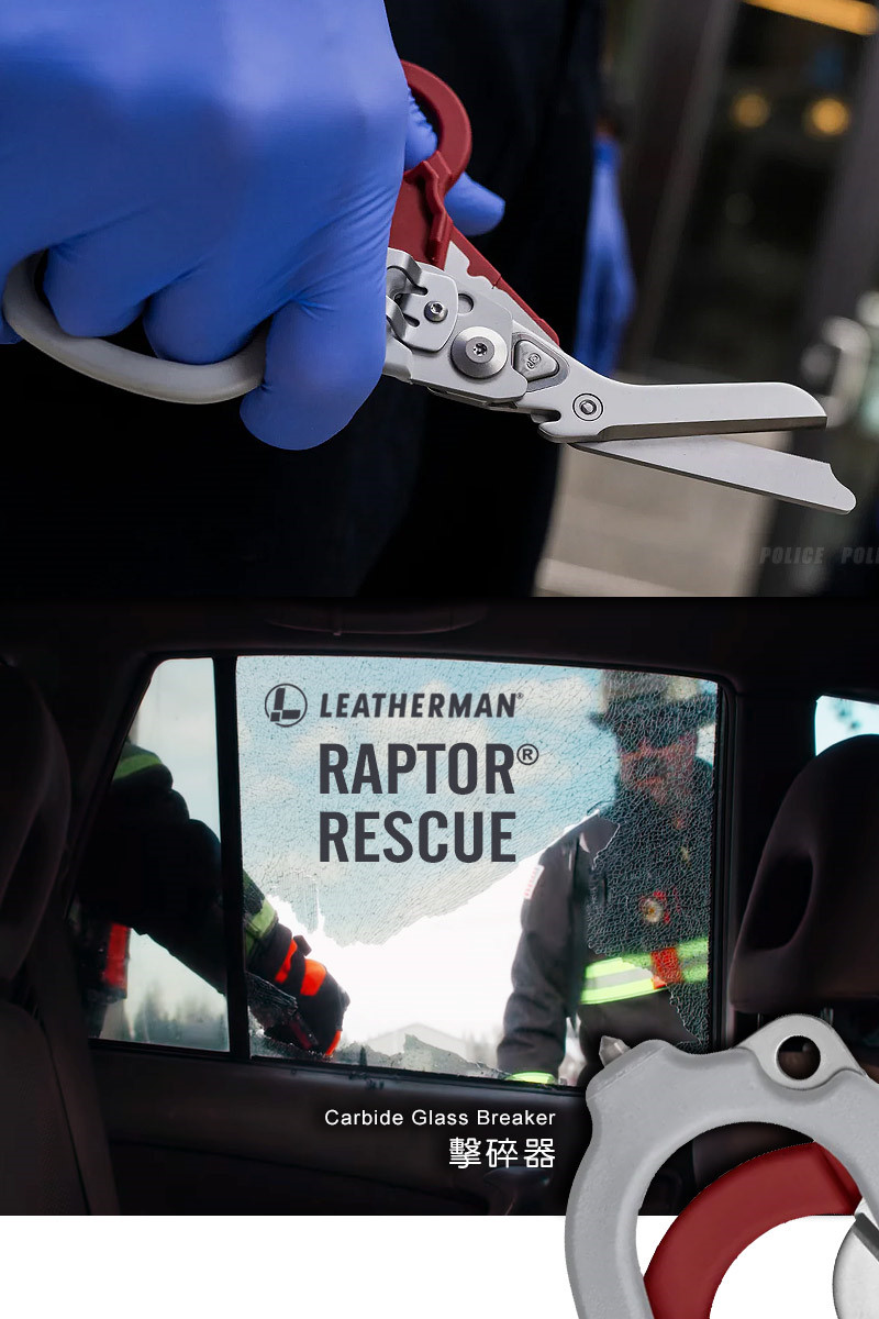 Leatherman的Raptor Rescue備有專業人士必要的工具,使其能在緊急情況下安全且迅速地作業。這款剪刀是在特殊作戰醫療人員、救護技術員(EMT)和熟悉剪刀的消防專業人士一同參與下開發的,旨在為應急救援提供恰到好處的多功能設計,不會因過多工具而增加在某些危急情況下的複雜性。當生死攸關時,Raptor Rescue的表現響亮而明確,其常見用途包括:應急救援剪刀、工業剪刀、布料剪刀、廚房剪刀及園藝剪刀。