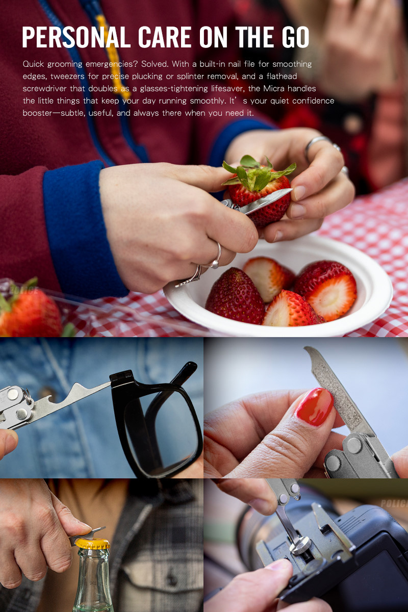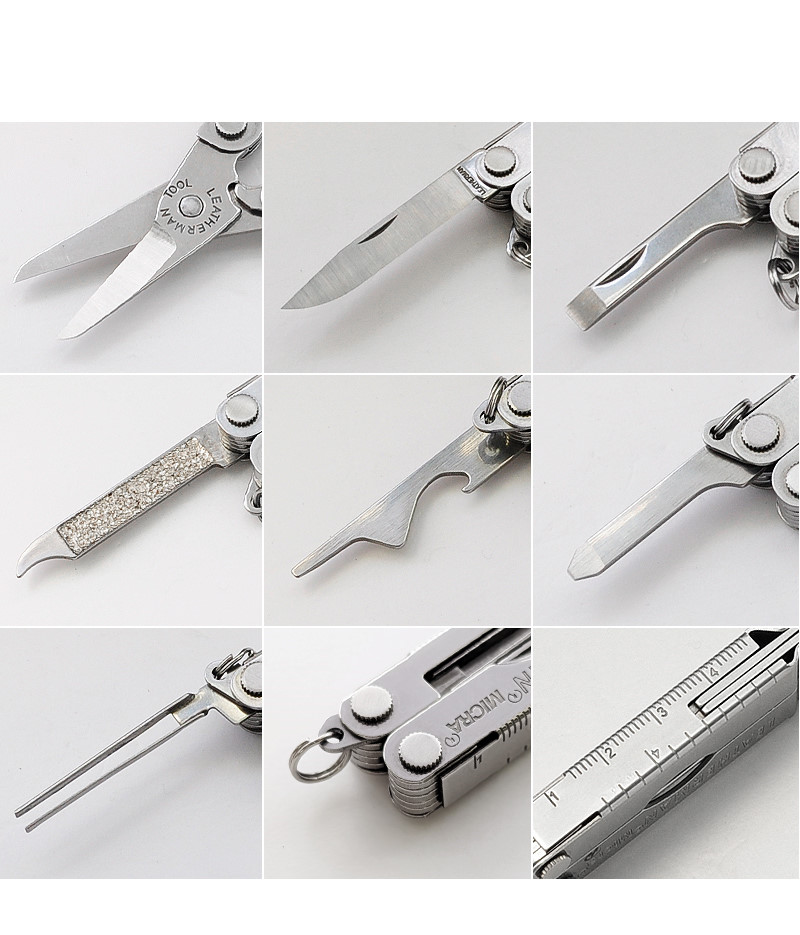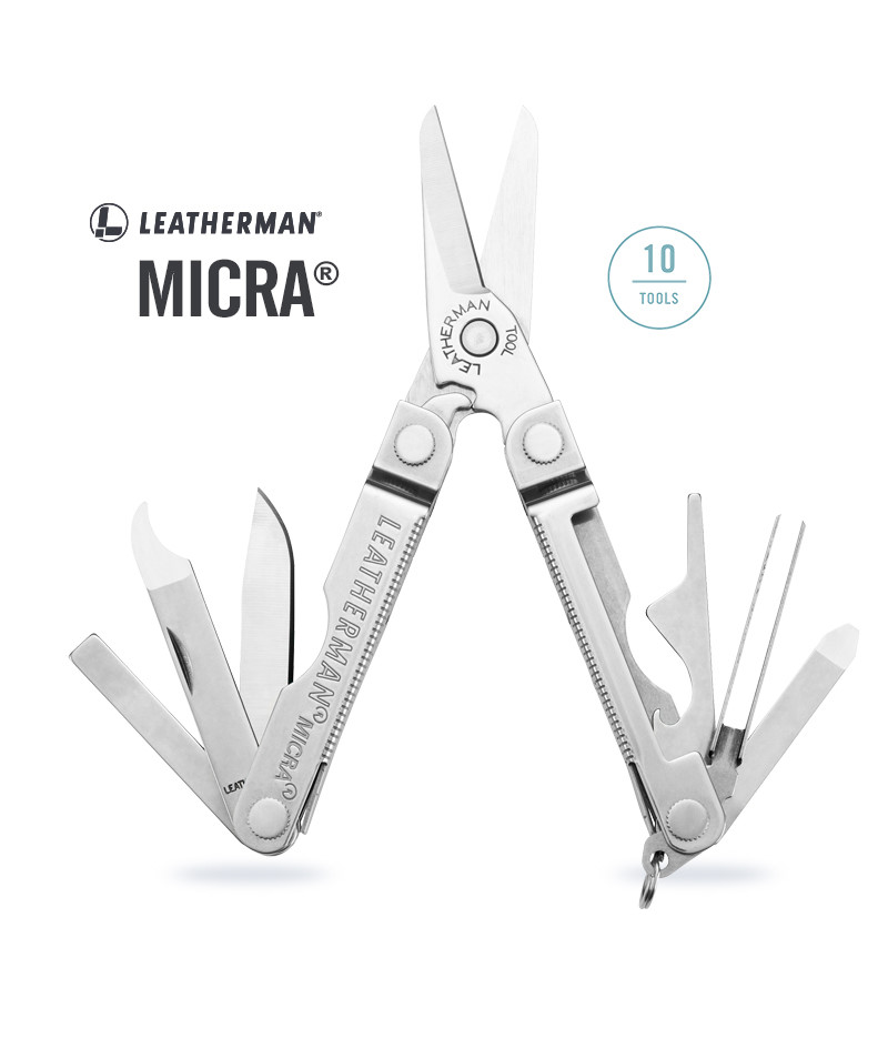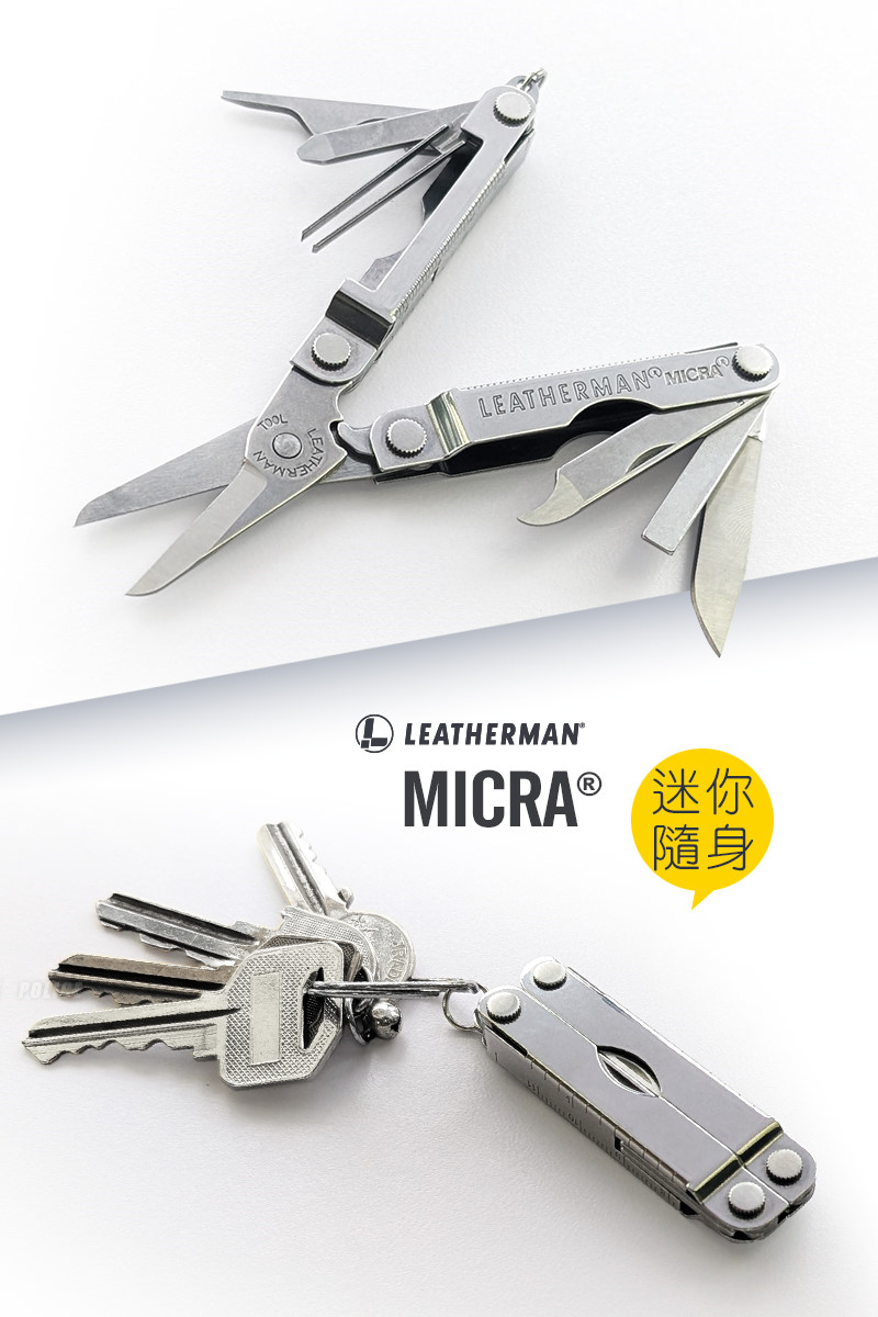 如果想要時尚地為日常做好準備,請選擇易於攜帶的 Leatherman Micra。這款緊湊的多功能工具可繫在您的鑰匙圈上或放入您的口袋或背包中。彈簧剪刀、螺絲起子等可處理切割標籤、一字起子功能與拴緊螺絲等小工作。
