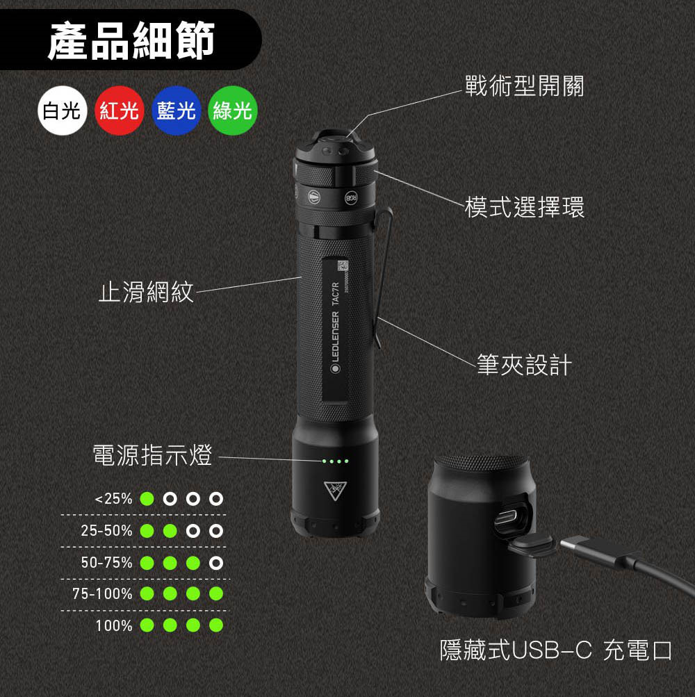 德國Ledlenser TAC7R RGB 專業戰術充電式手電筒 -3200流明