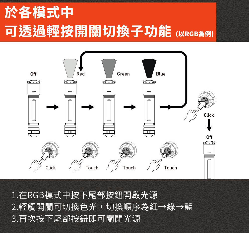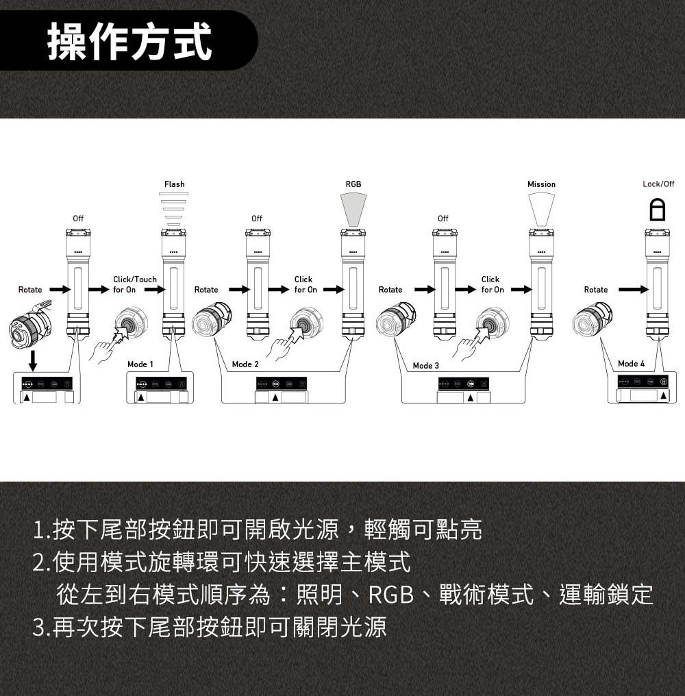 ●直覺快速控制:戰術端蓋開關和模式選擇環,可快速、精確地選擇模式,包括任務、閃光、RGB 和傳輸鎖定。