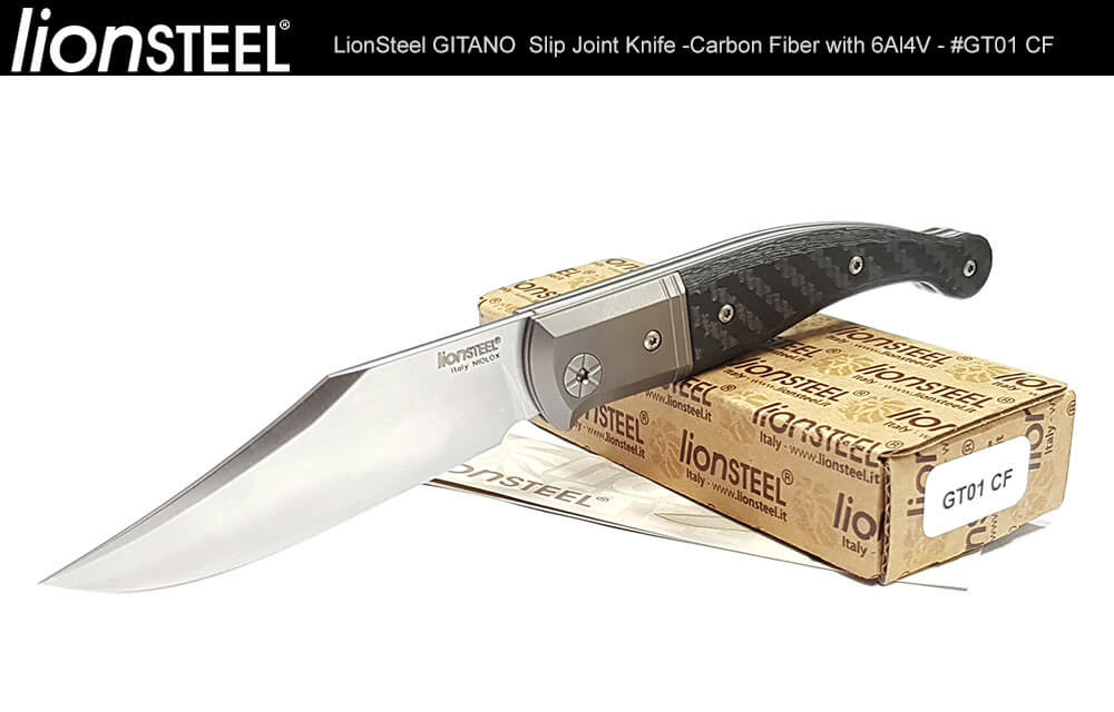 Gitano的歷史無論在尺寸,形狀和用途上各不相同,但Van Poppel賦予它友善的外觀以及便於攜帶的尺寸,並配 上一個彎曲的鋼夾;LionSteel負責製造和材料:Niolox鋼,6AI4V鈦框架以及使用天然木和合成材質作為握柄。除 了提供兩種橄欖木及桑多斯木選擇之外,還提供碳纖維,G-10和Micarta材質握柄。