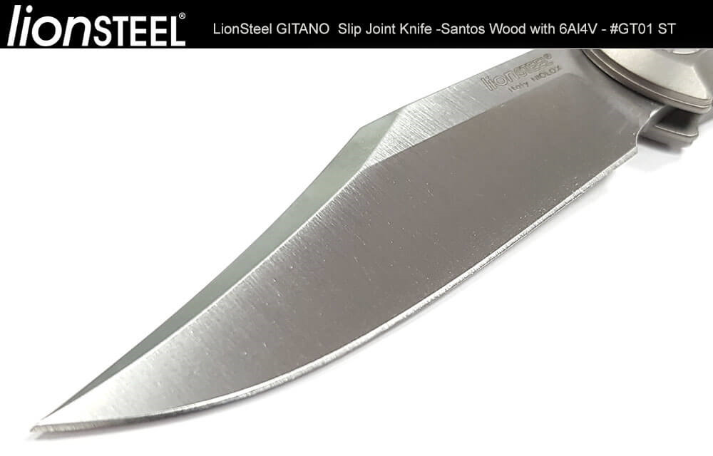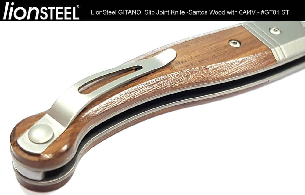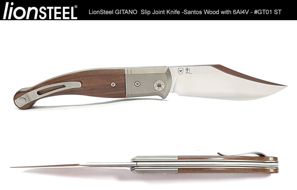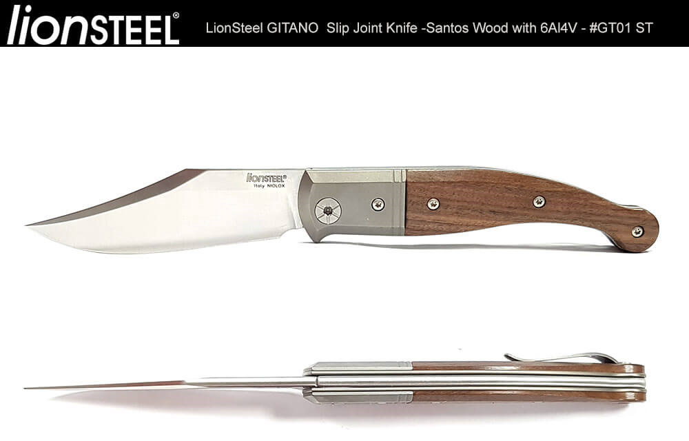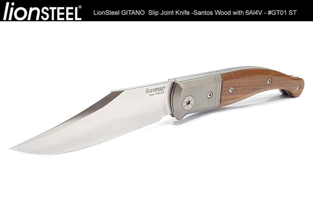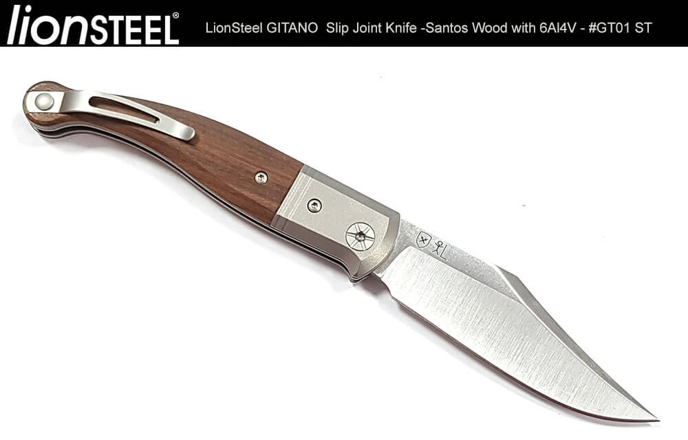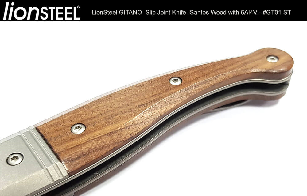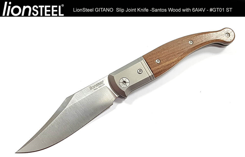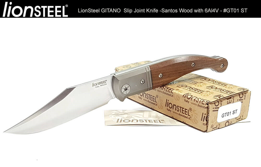 Gitano的歷史無論在尺寸,形狀和用途上各不相同,但Van Poppel賦予它友善的外觀以及便於攜帶的尺寸,並配 上一個彎曲的鋼夾;LionSteel負責製造和材料:Niolox鋼,6AI4V鈦框架以及使用天然木和合成材質作為握柄。除 了提供兩種橄欖木及桑多斯木選擇之外,還提供碳纖維,G-10和Micarta材質握柄。