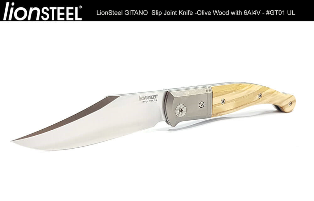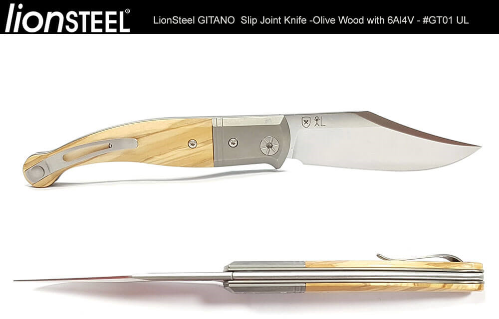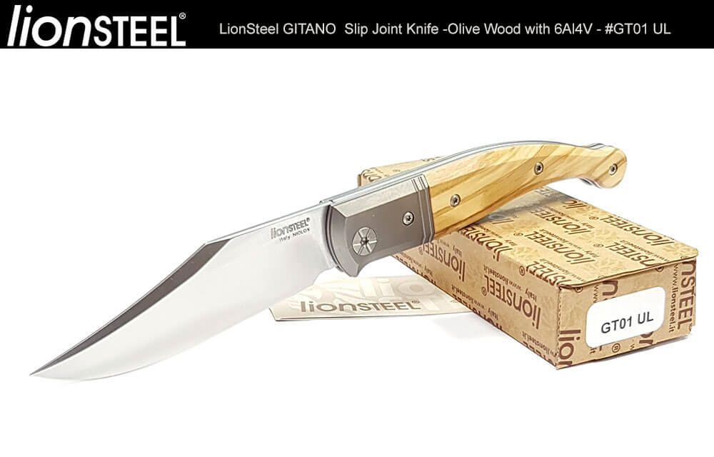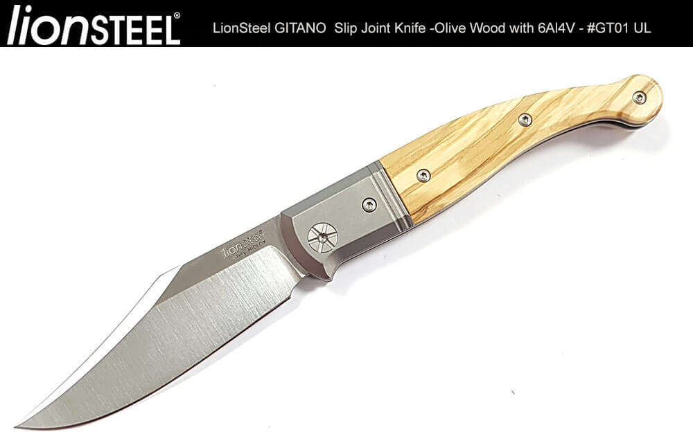 Gitano的歷史無論在尺寸,形狀和用途上各不相同,但Van Poppel賦予它友善的外觀以及便於攜帶的尺寸,並配 上一個彎曲的鋼夾;LionSteel負責製造和材料:Niolox鋼,6AI4V鈦框架以及使用天然木和合成材質作為握柄。除 了提供兩種橄欖木及桑多斯木選擇之外,還提供碳纖維,G-10和Micarta材質握柄。