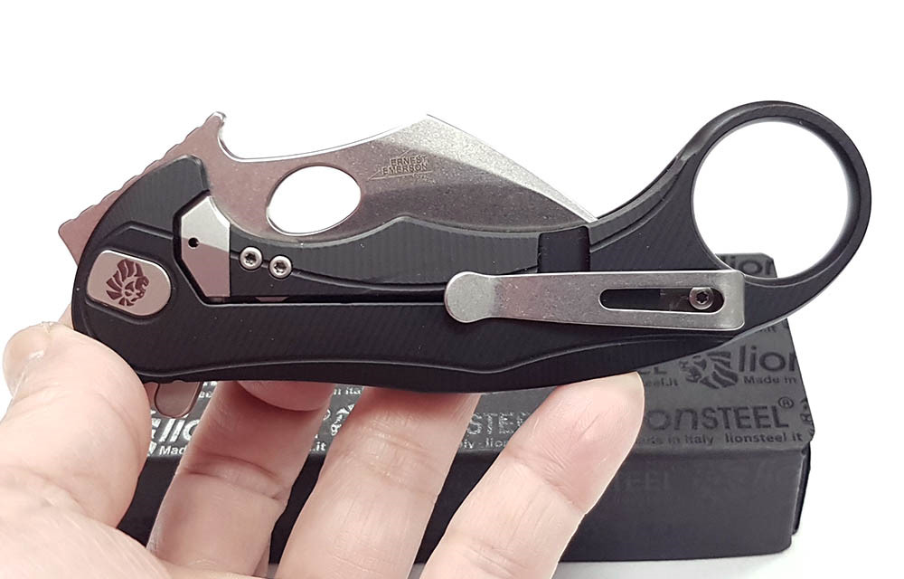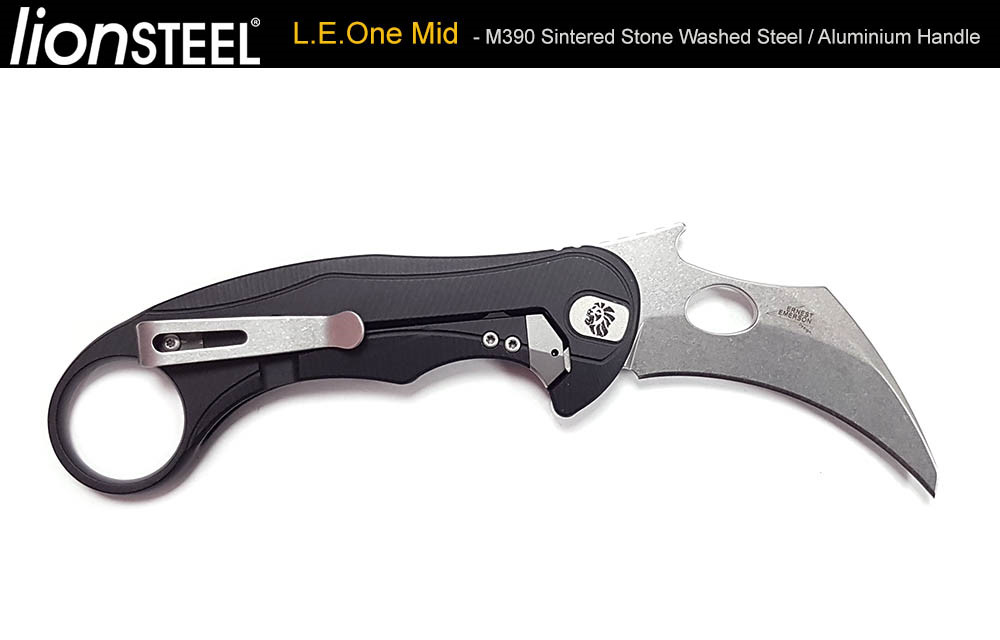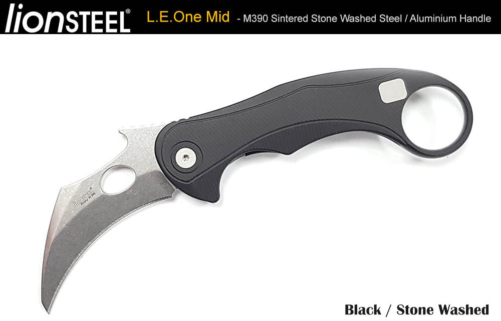Lion Steel L.E.One Mid - 黑鋁柄 Frame Lock Karambit 折刀 - M390 鋼(石洗處理)
