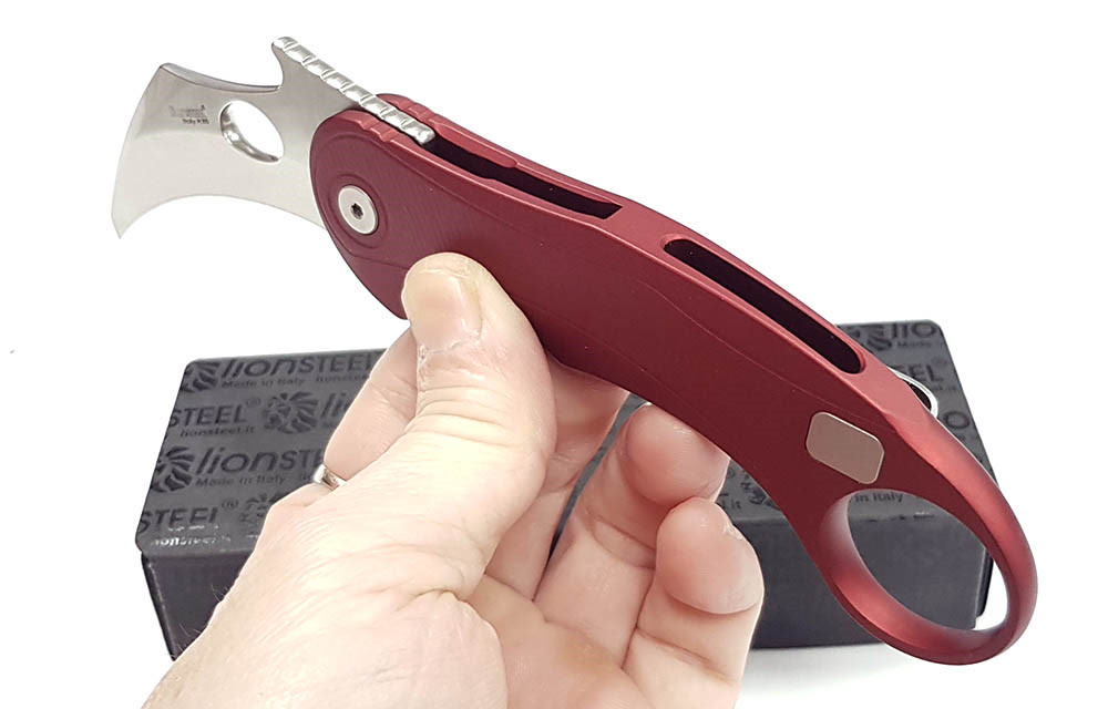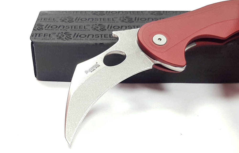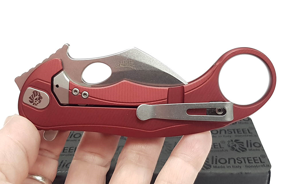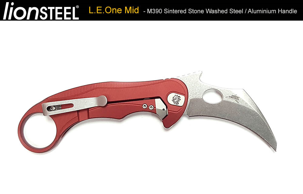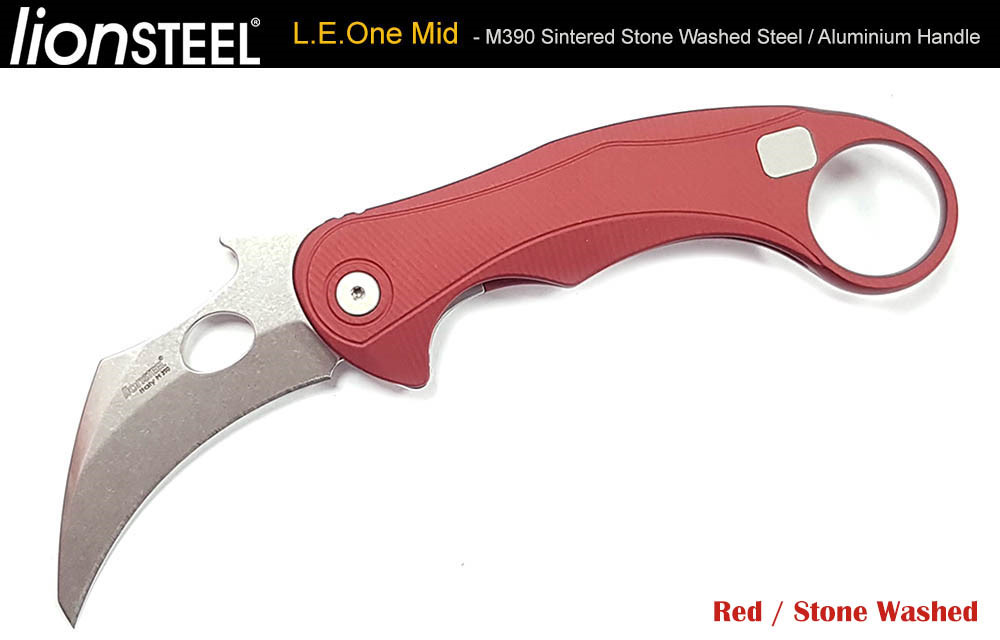 Lion Steel L.E.One Mid - 紅鋁柄 Frame Lock Karambit 折刀 - M390 鋼(石洗處理)