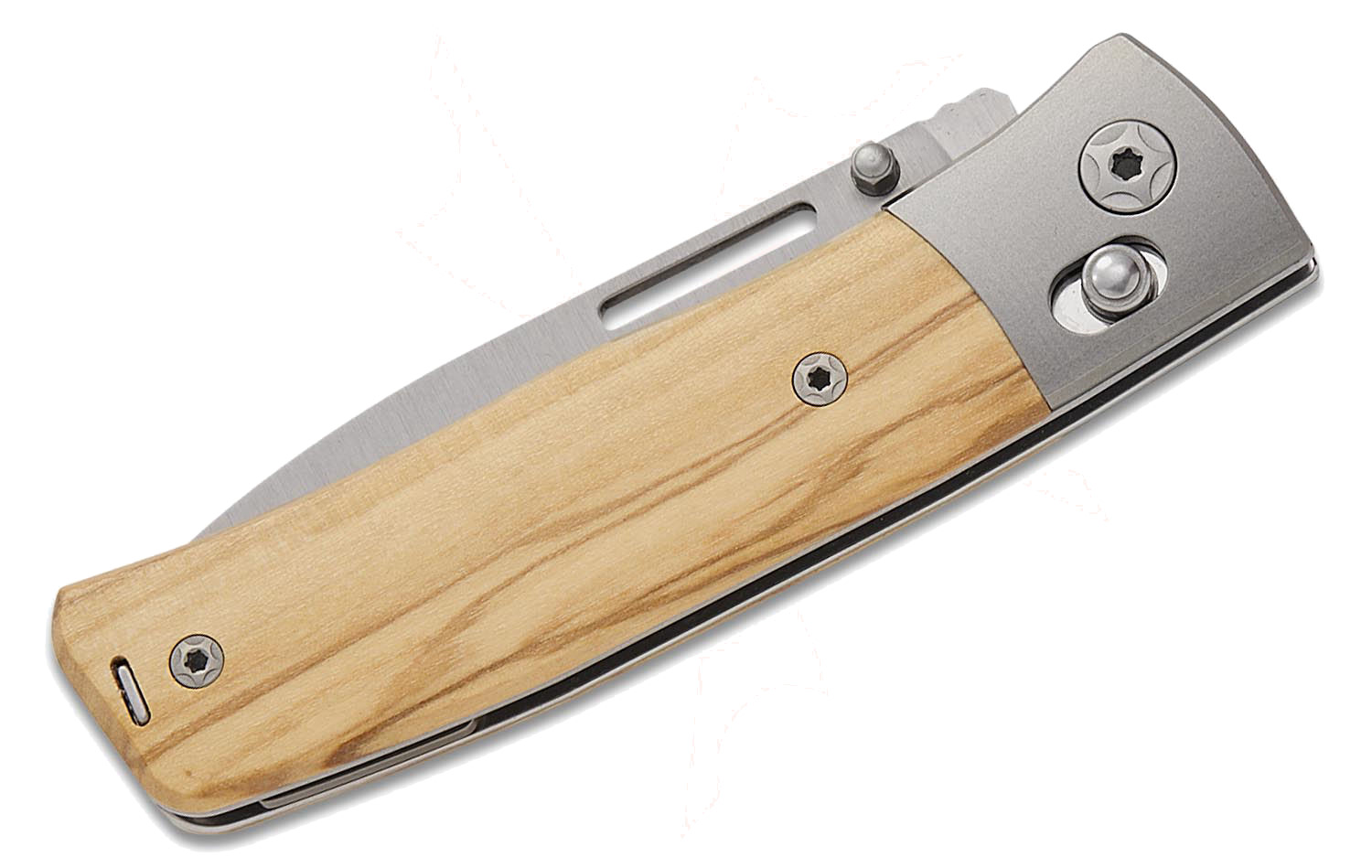 刀身採用高階 M390 鋼材製成,並經過緞面處理,具備優異的持刃性與耐磨性。刀具提供多種開啟方式,配備可拆卸拇指柱,使用者可自行卸下固定柱,僅保留低調的指甲槽,呈現更簡潔俐落的外觀。