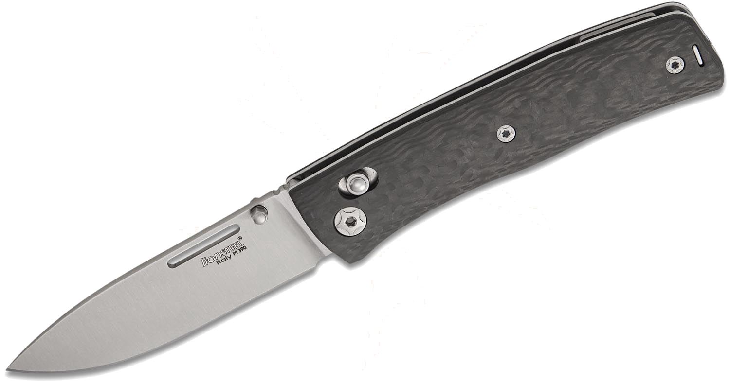 刀身採用高階 M390 鋼材製成,並經過緞面處理,具備優異的持刃性與耐磨性。刀具提供多種開啟方式,配備可拆卸拇指柱,使用者可自行卸下固定柱,僅保留低調的指甲槽,呈現更簡潔俐落的外觀。