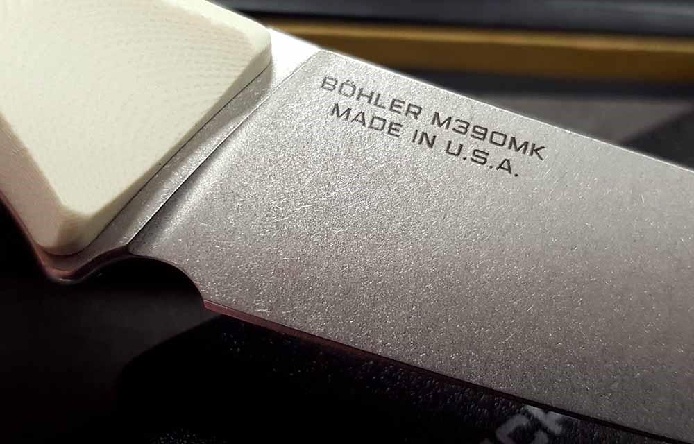 ●刀刃:採用 M390MK 鋼材製成,表面經石洗處理的微妙拖曳刀刃。