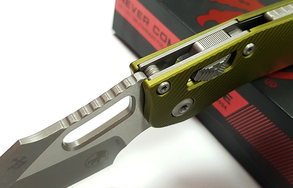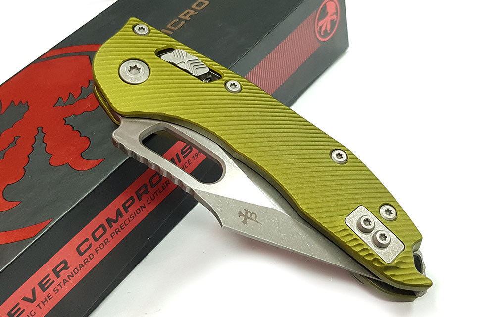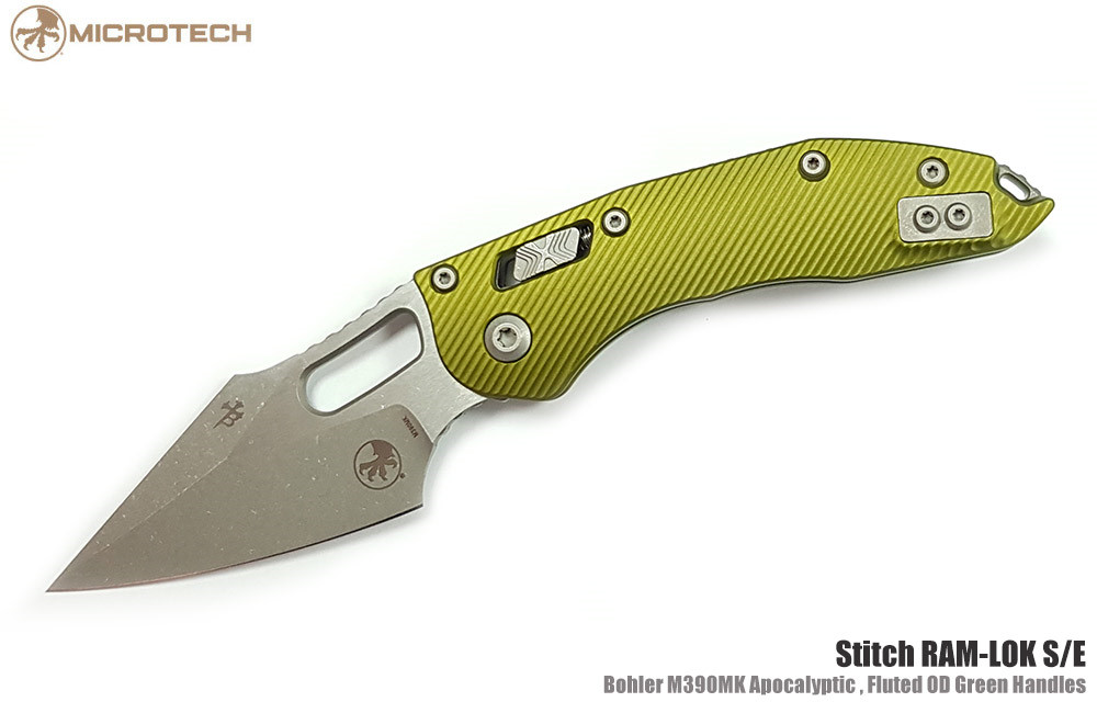 Microtech STITCH RAM-LOK 綠G10凹紋柄全刃折刀- M390MK鋼 (末日石洗處理)
