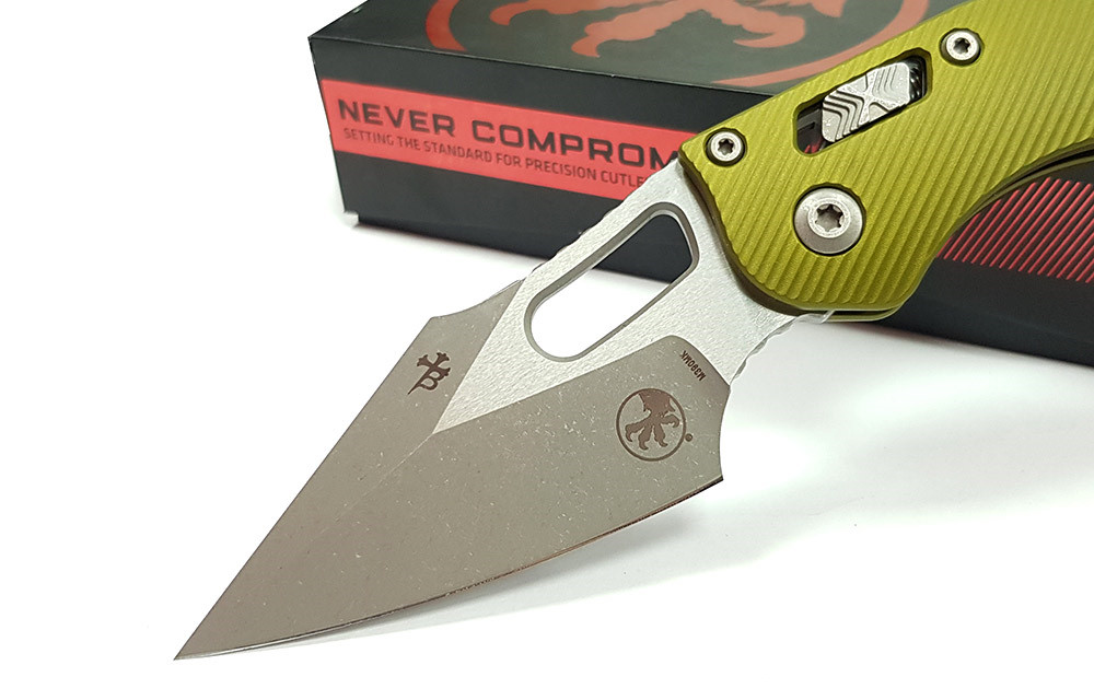 G10 凹紋柄握感扎實,在標準握持和反向握持中提供了巨大的抓握力。 Microtech Stitch 是 Tony Marfione 和 Sebastijan Berenji(又名 Borka)之間的完美戰術合作。它採用了 Sebastijan 出色的 Stitch 設計,並將其與 Tony 出色的開啟機制相結合,創造了有史以來最酷的製作合作之一。 3.625 英吋矛尖刀片採用平面磨削,可在更精細的切割任務中實現出色的能力。