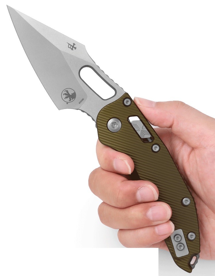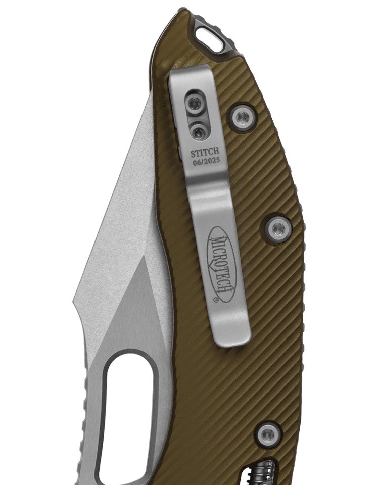 Microtech Stitch 是 Tony Marfione 與 Sebastijan Berenji(又名 Borka)之間的一次美妙戰術合作。它將 Sebastijan 精彩的 Stitch 設計與 Tony 出色的開啟機構結合,打造出有史以來最酷的量產聯名作品之一。3.625 吋的矛尖刀刃採用平面研磨,指槽與拇指止滑坡面設有卡紋,能在精細切割任務中提供出色的抓握與操控。