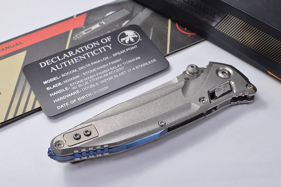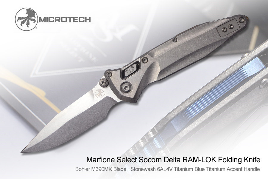 Microtech Marfione Select Socom Delta鈦柄藍色零件/Spear Point刀形Bohler M390MK鋼