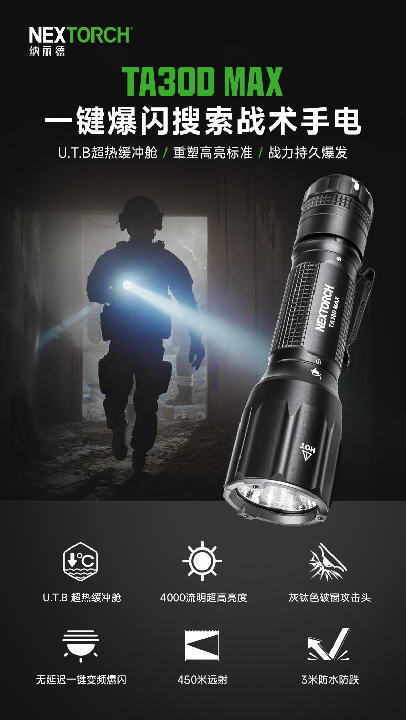 NEXTORCH TA30D MAX 一鍵爆閃搜尋戰術手電筒 - 4000流明