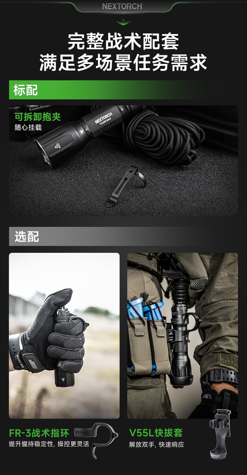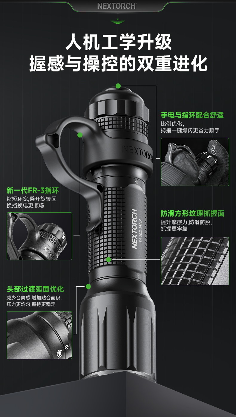 新一代 FR-3 戰術環 — 更窄的設計改進了模式變更和電池更換,沒有任何阻礙。