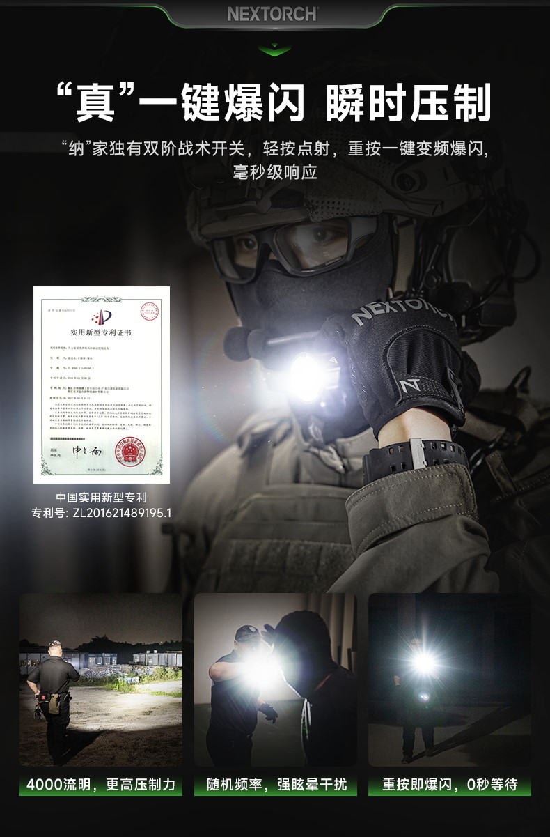 戰術行動 — 高輸出和即時頻閃,用於抑制目標。