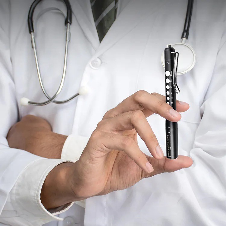輕量緊湊設計(39 g、149 mm),便於放入白大褂口袋長時間使用。