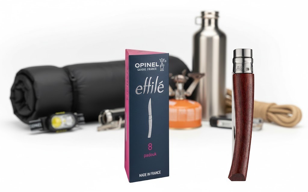 Opinel Effilé,前身為 Slim Line,是 Opinel 旗下這款優雅口袋刀系列的全新名稱。 Opinel Effilé 口袋刀提供多種尺寸,並配有各式奢華的木質刀柄! Effilé 系列的全新標誌印刻在金屬刀柄護套上。
