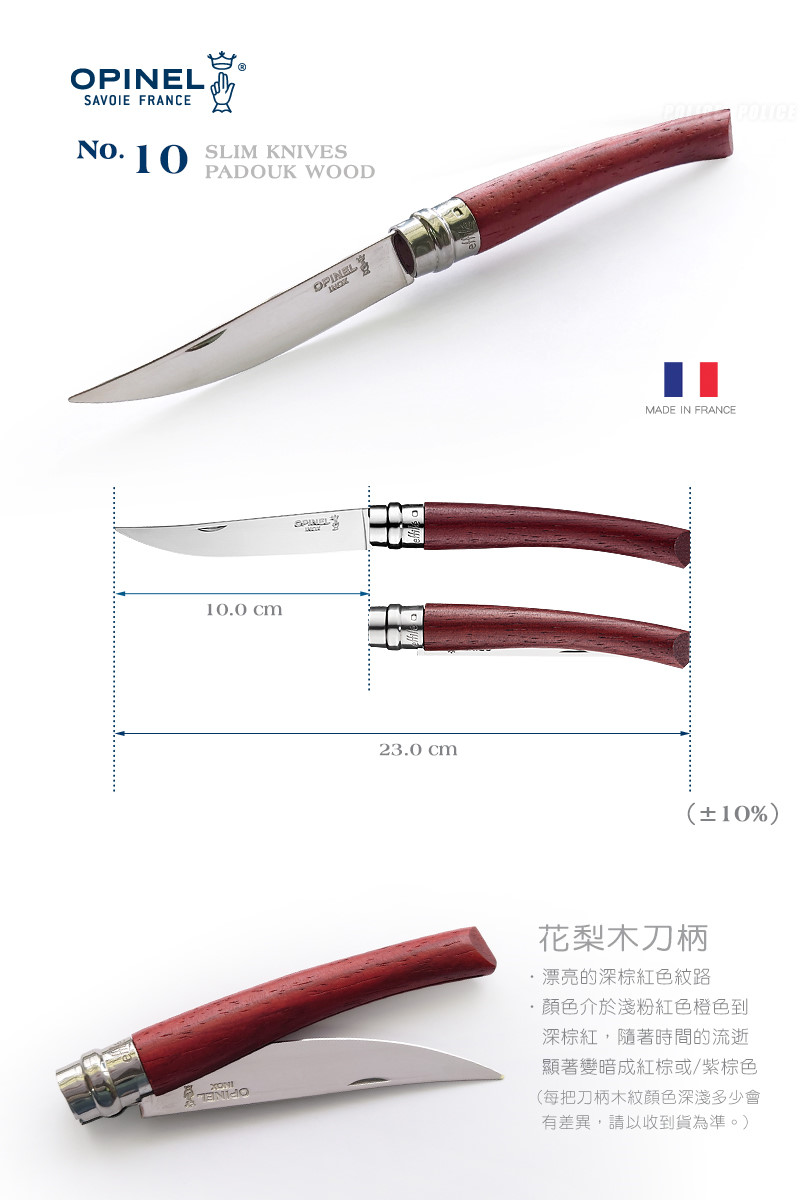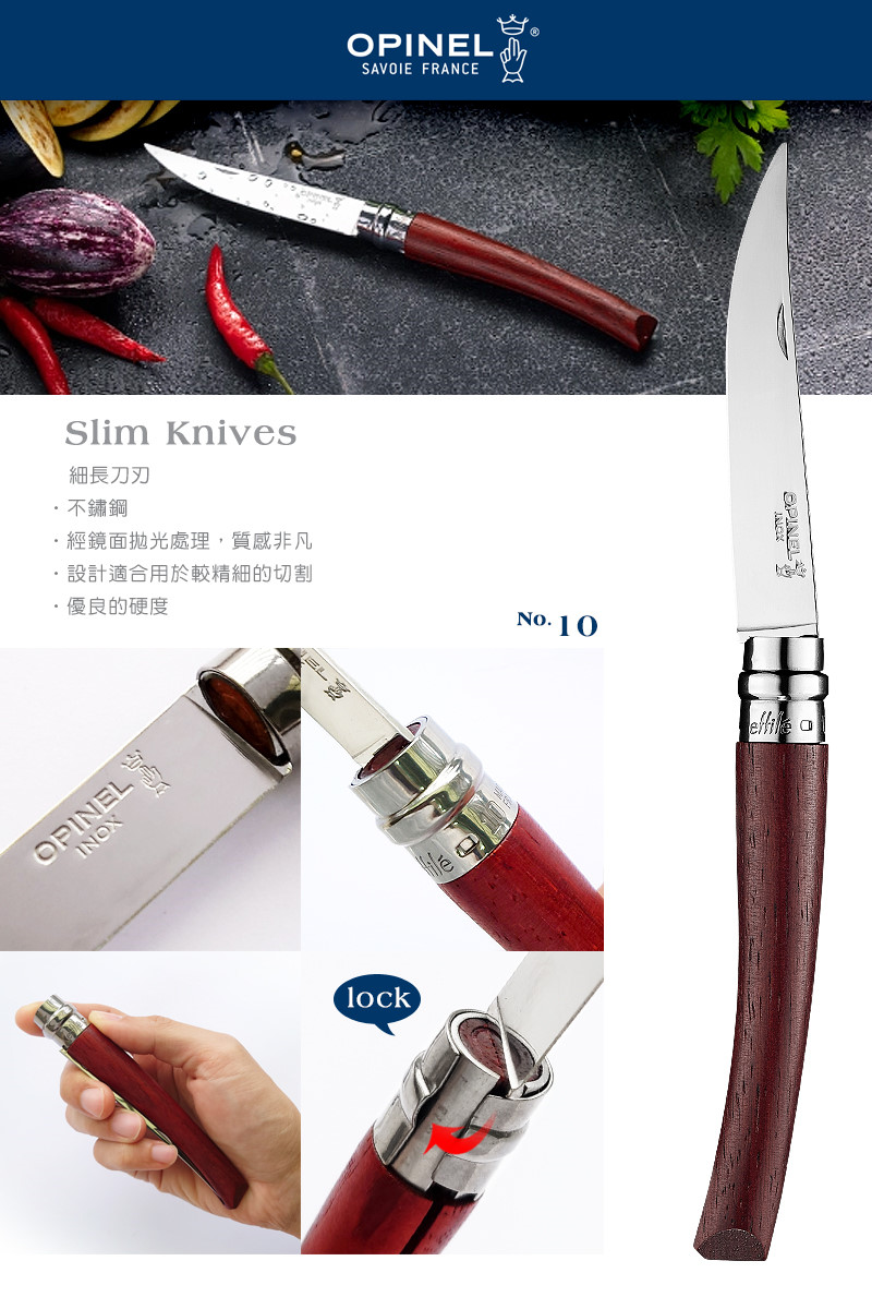 OPINEL 紅花梨木 Effilé 10 折刀- Virobloc指環鎖定