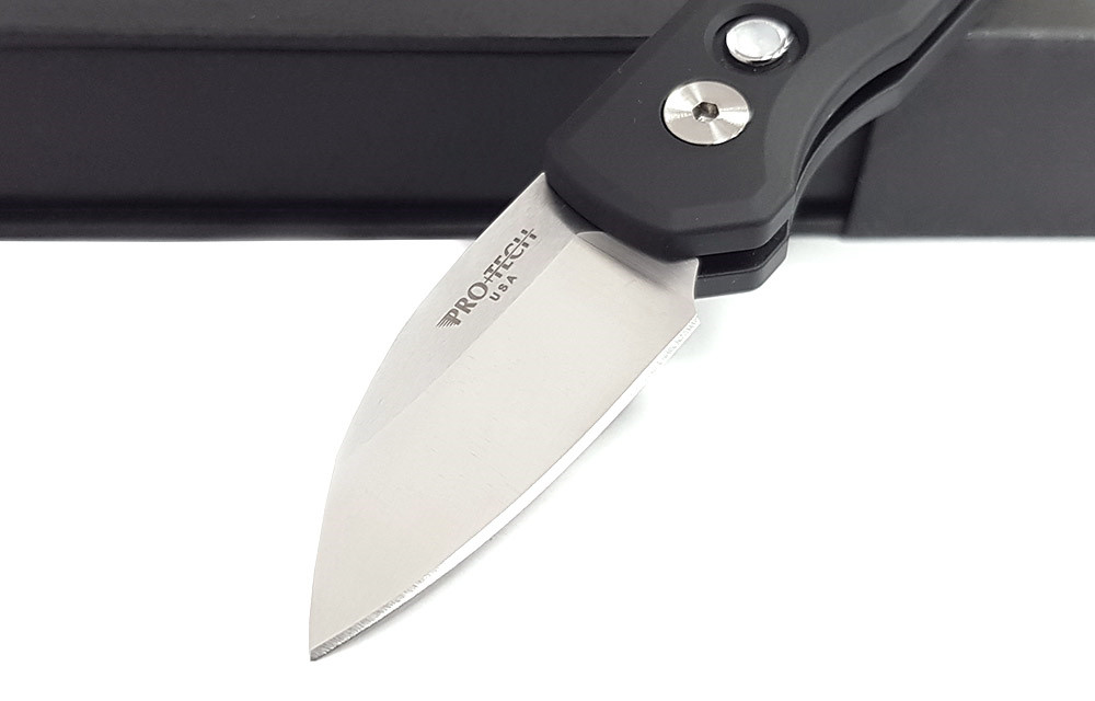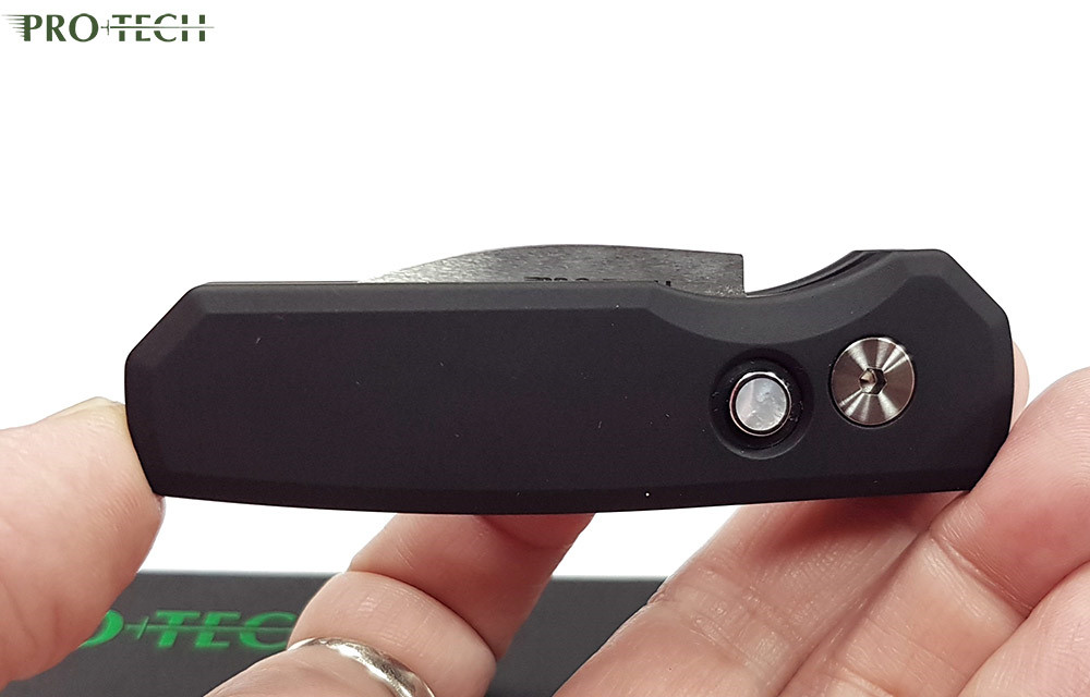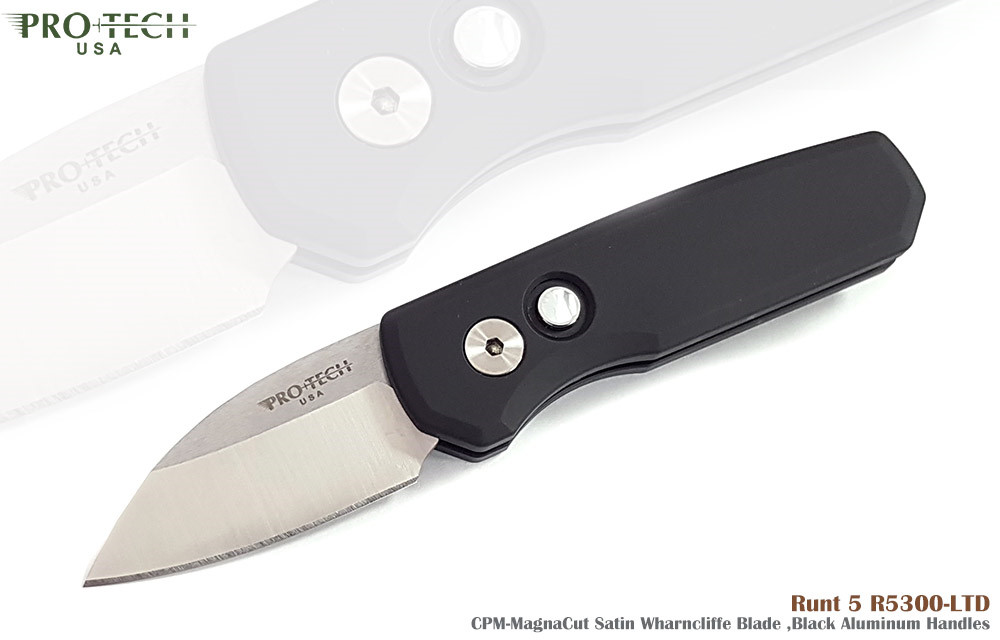 PROTECH Runt 5 AUTO 黑鋁柄按鈕鎖全刃彈簧刀 - CPM-MagnaCut鋼(Satin處理)