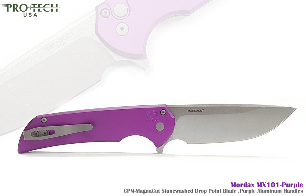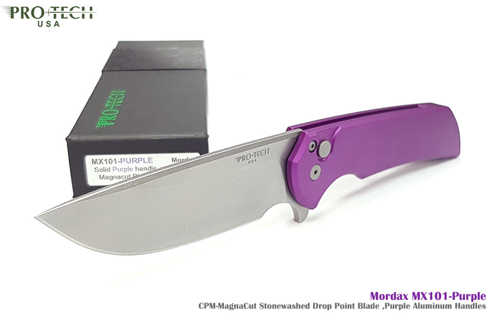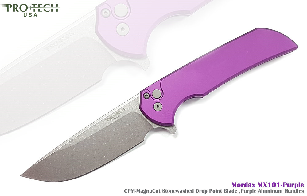PROTECH Mordax MX101 Purple 紫鋁柄按鈕鎖全刃折刀 - CPM-MagnaCut鋼(石洗處理)