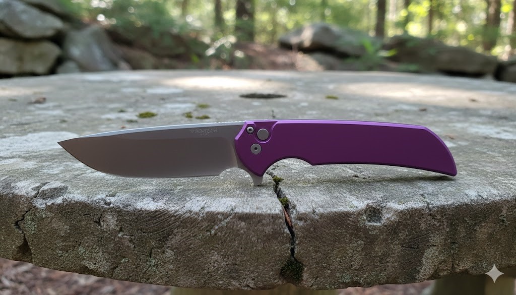 Pro-Tech Mordax MX101 Purple 適合追求高品質美產工藝與亮眼配色的玩家。它不像傳統自動刀受限於法律法規,手動按鈕鎖的設計使其在全球多數地區更具合法攜帶性。