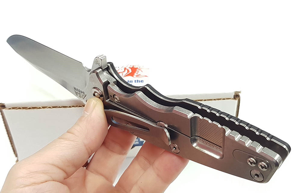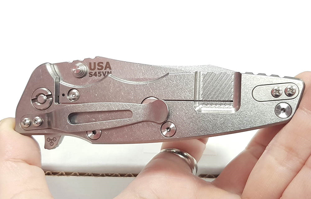 Eklipse的設計理念獨樹一幟,與我其他的設計,例如XM-18,截然不同。在設計Eklipse時,Rick採用了更線性的握柄和刀刃尺寸。刀刃展開後,刀尖的線條流暢地延伸至握柄中心,使刀尖能穩固地位於握柄的中心位置。這使得在任何使用場景下,都能感受到輕盈舒適的握持感。雙指凹槽和傾斜的握柄底部設計,共同賦予Eklipse符合人體工學的握持體驗。大拇指坡道搭配尺寸合適的防滑紋,確保在使用擊劍式握法時也能牢牢握住刀具。與我的其他折刀一樣,新款Eklipse也配備了鋼製鎖定桿,當然,它還搭載了我全新的Triway樞軸系統!