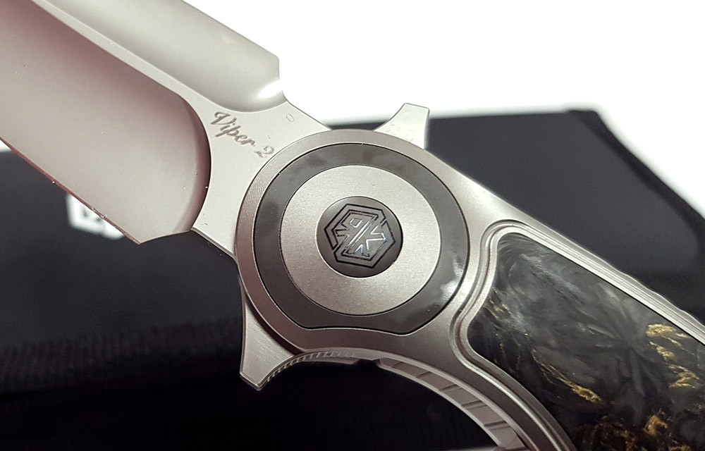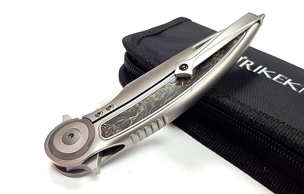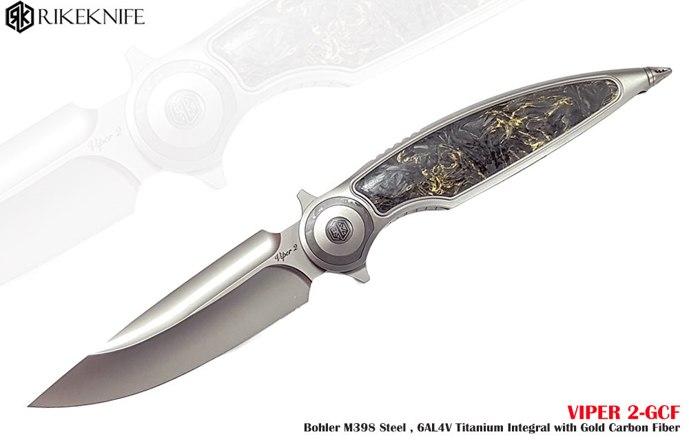 Rikeknife RK VIPER 2 毒蛇2 鈦鑲金色碳纖維柄 Frame Lock折刀 -M398鋼( Bead Blasted處理)【不二價】