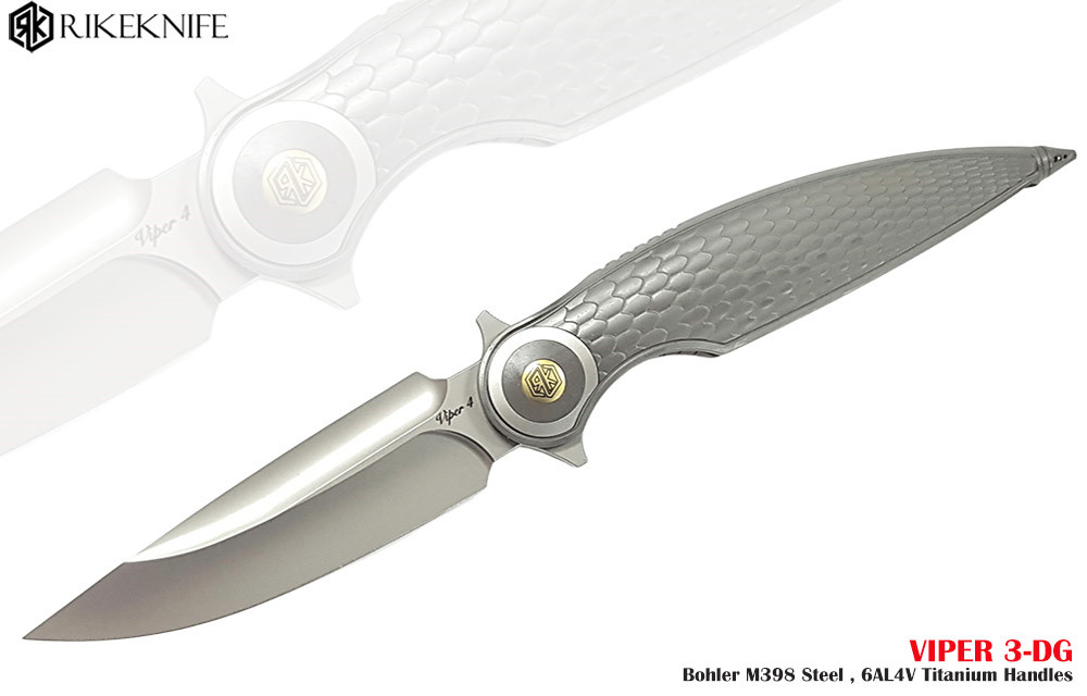 Rikeknife RK VIPER 4 毒蛇4 蛇鱗深灰鈦柄Frame Lock折刀 -M398鋼( Bead Blasted處理)【不二價】