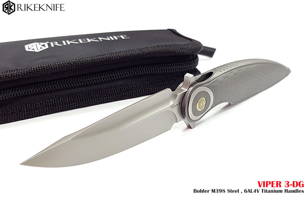 除了限量的大馬士革藝術版外,Rike Knife 推出的 Viper 4 (M398 鋼材版) 是一款針對「極致性能」與「重裝 EDC」開發的頂尖折刀。它延續了 Viper 3 的高規格,但在柄材處理與整體結構上更進一步。
