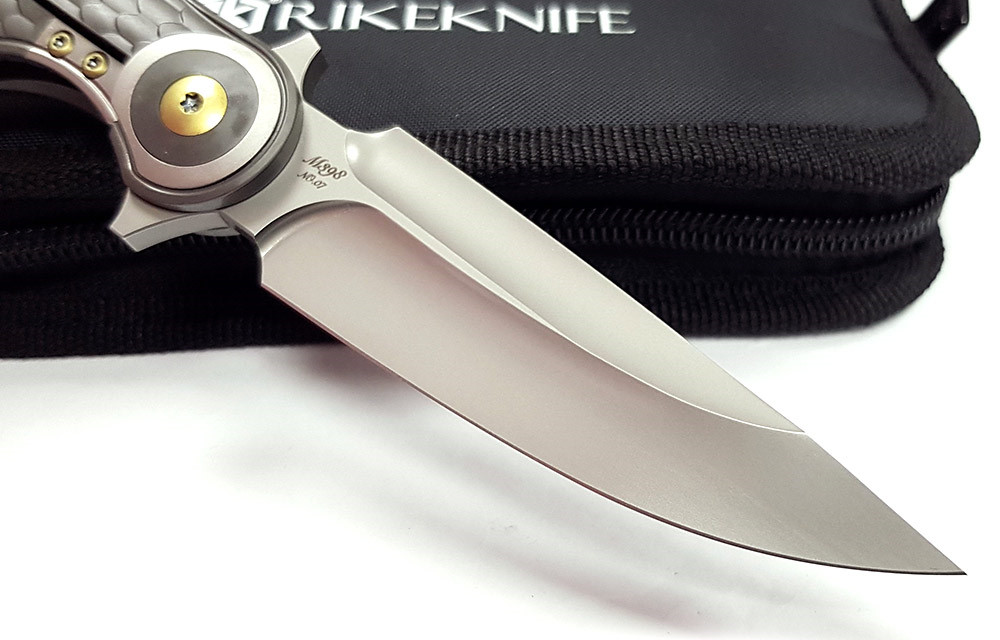 ●鋼材之王 M398: 不同於常見的 M390,M398 擁有更高的碳與鉻含量,其硬度通常可達 HRC 62-64。它提供了極其誇張的鋒利度保持性(Edge Retention),是追求「長效切割」玩家的首選。