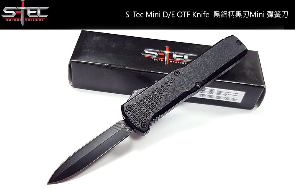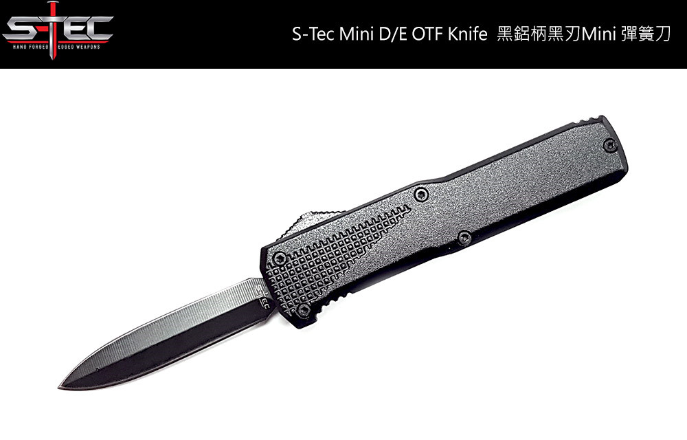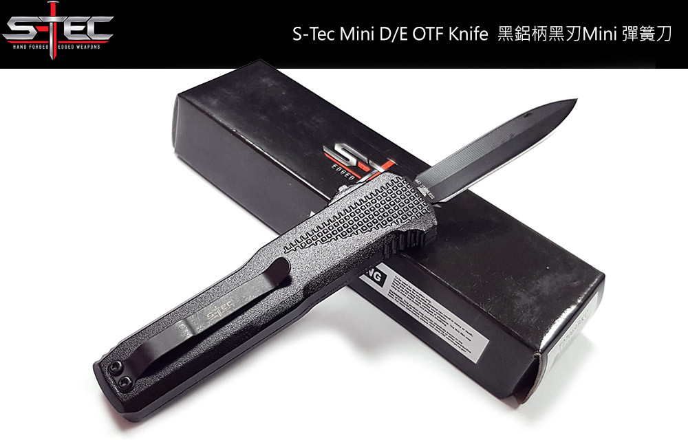 S-TEC 黑鋁柄 D/E OTF Mini 彈簧刀 - 440鋼(單刃開鋒 -黑刃)