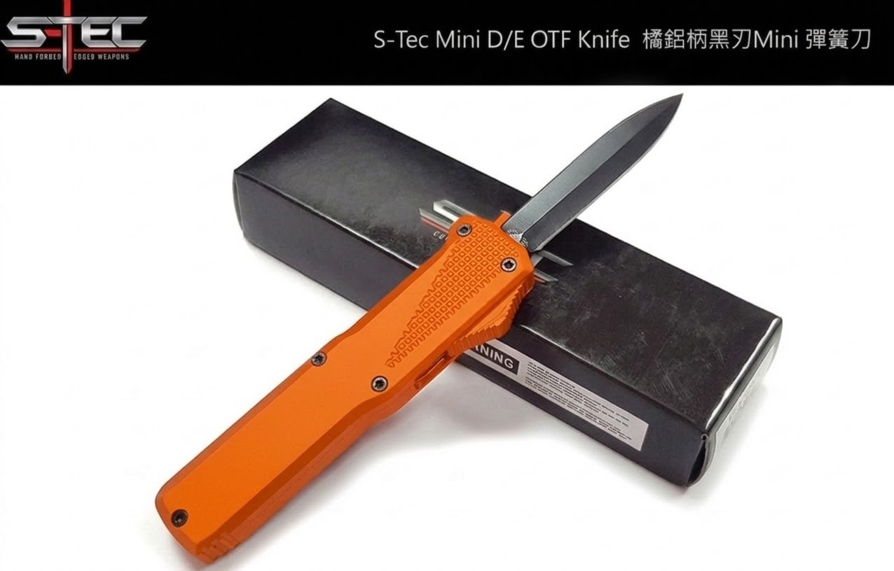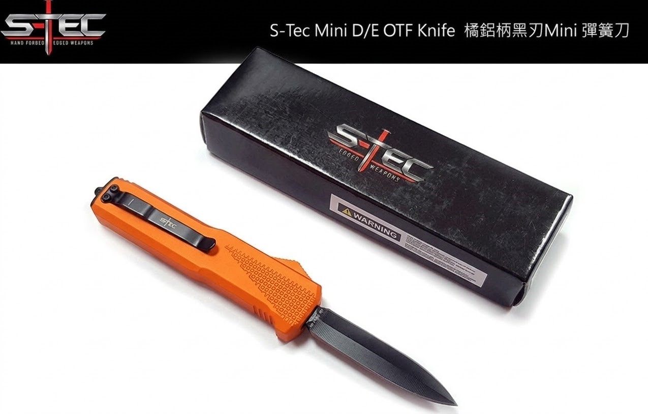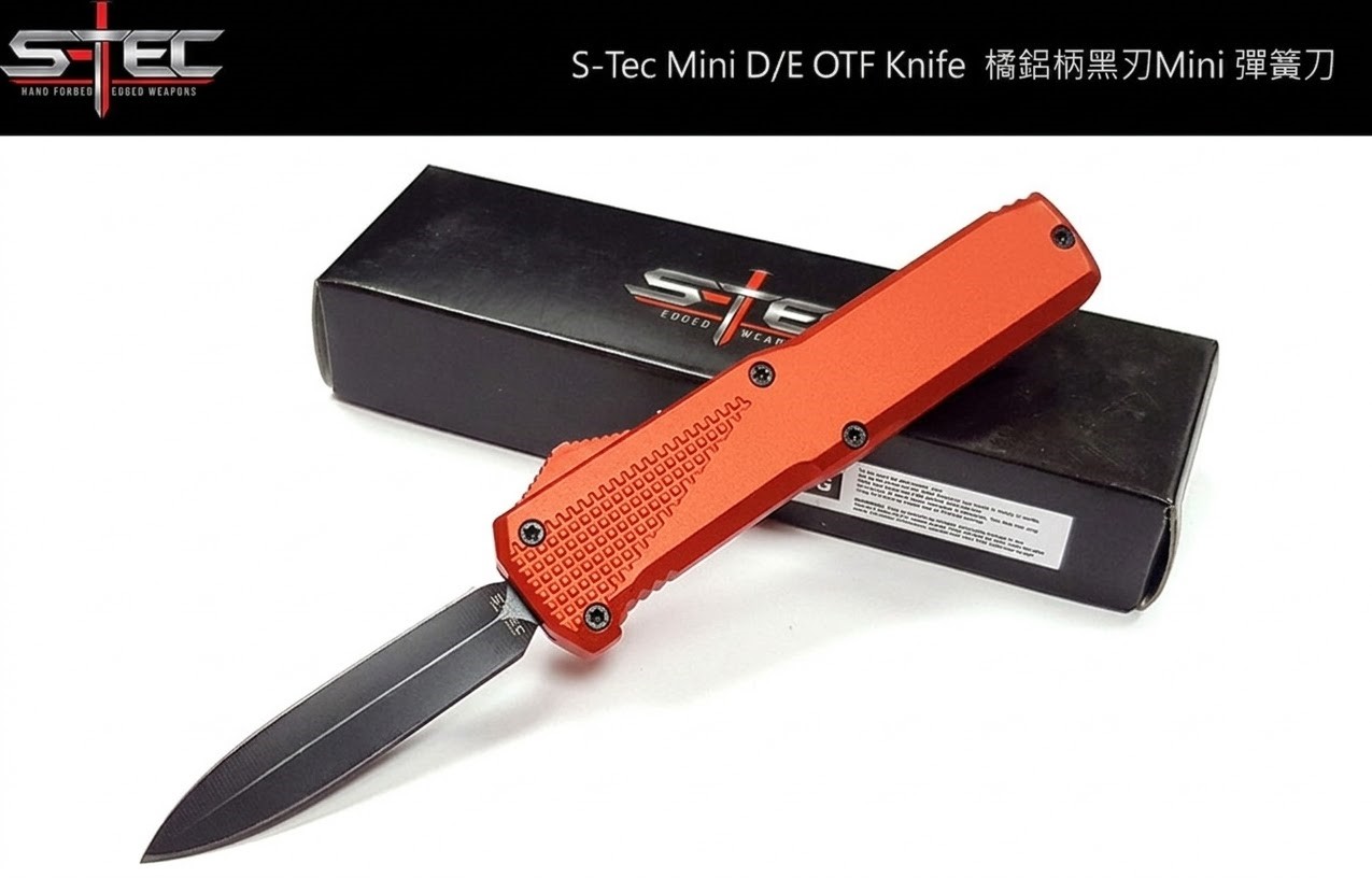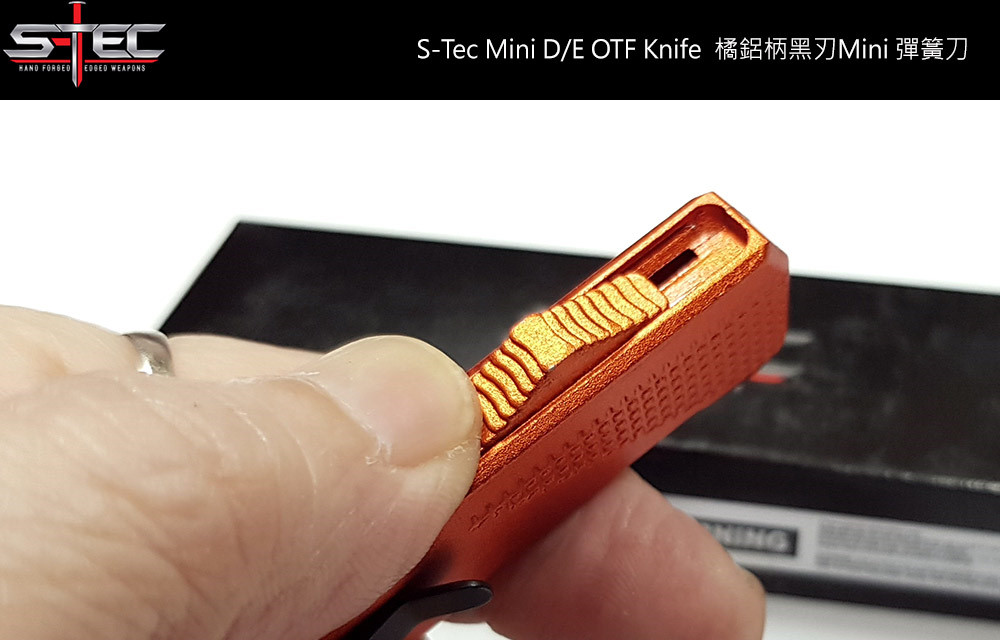 S-TEC 橘鋁柄 D/E OTF Mini 彈簧刀 - 440鋼(單刃開鋒 -黑刃)