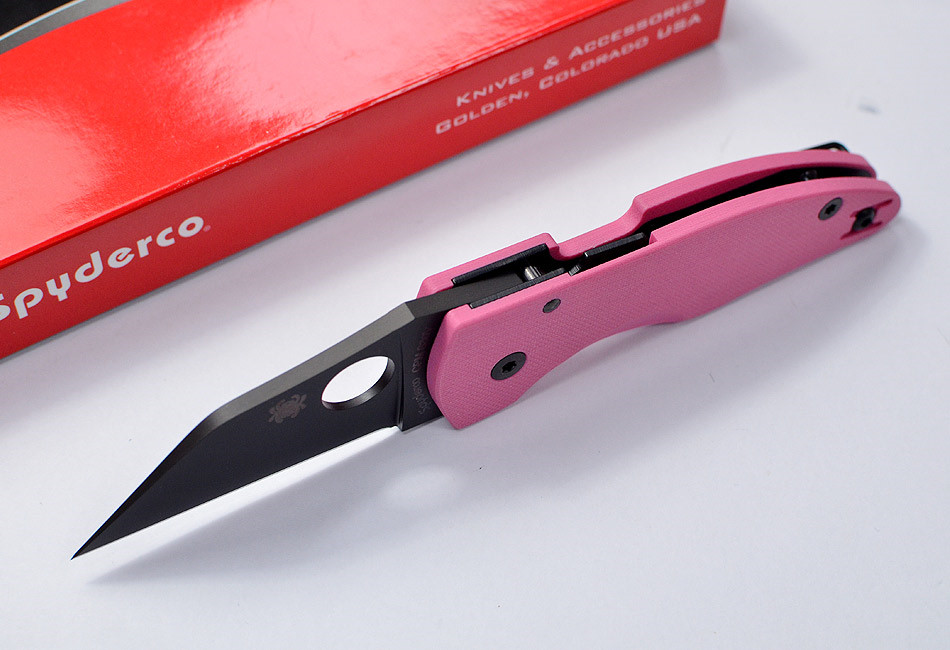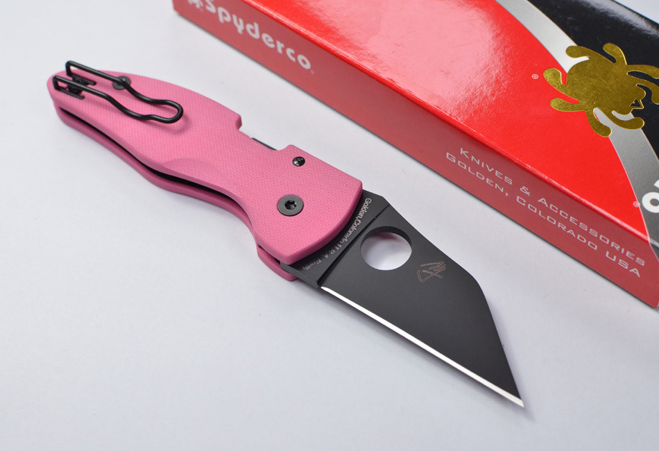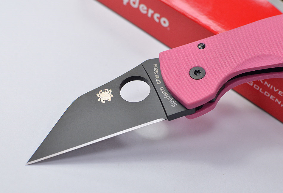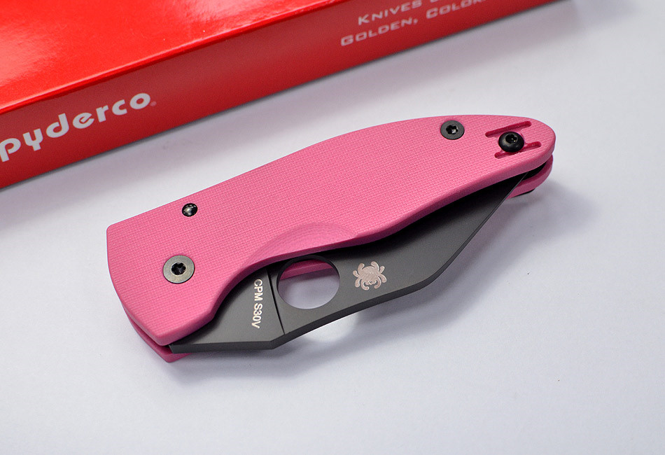 Spyderco Microjimbo 迷你格鬥粉色G10柄折刀 (S30V鋼黑刃DLC)