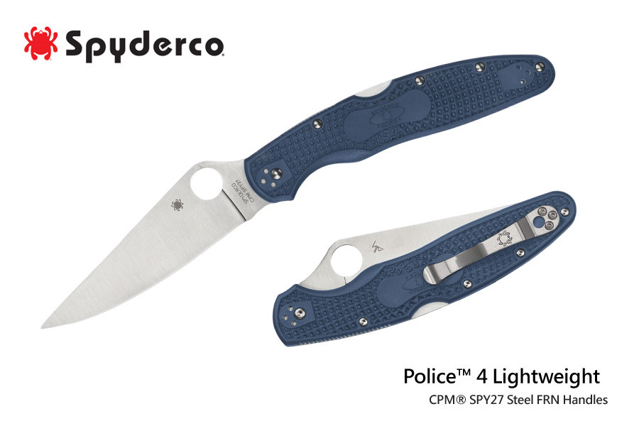 Spyderco Police警用刀經過30多年的發展過程中使用不同的材料和不同的磨刀類型,這款Spyderco Police 4是最新第4代刀款,採用CPM® SPY27鋼製作刀身,握柄改採輕量化的FRN(Fiberglass Reinforced Nylon --玻璃纖維增強尼龍)製作,抗衝擊韌性強,更具彈性。