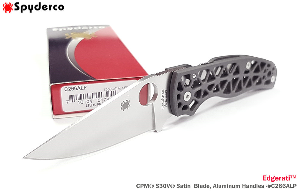 Spyderco Edgerati™ 灰色鏤空鋁柄 Compression Lock 全刃折刀-CPM® S30V®鋼 (Satin處理)