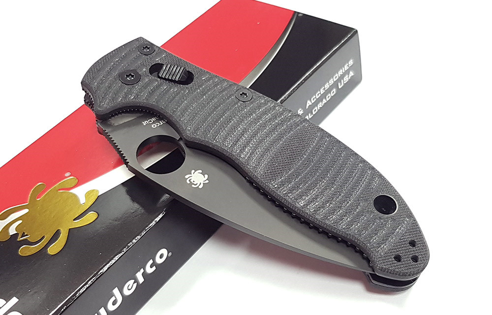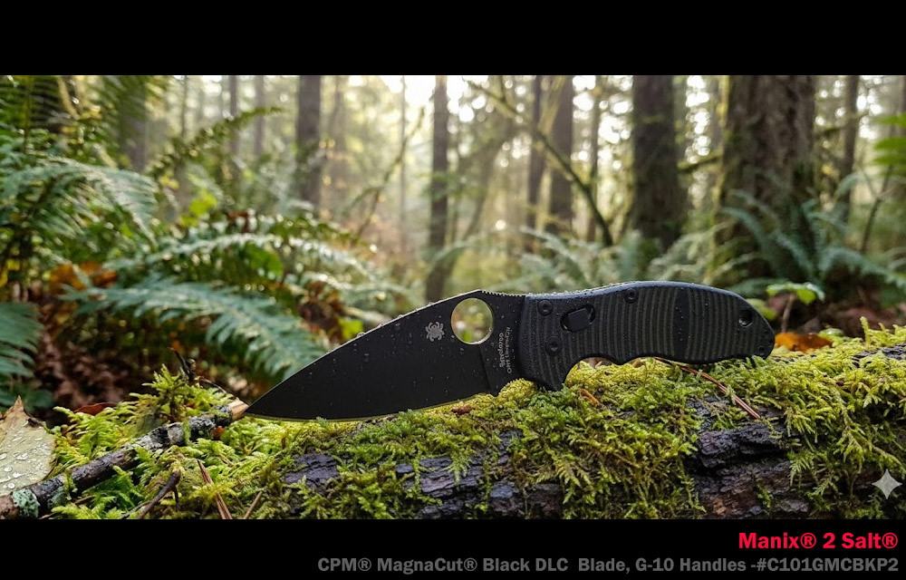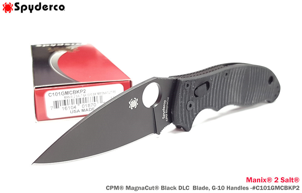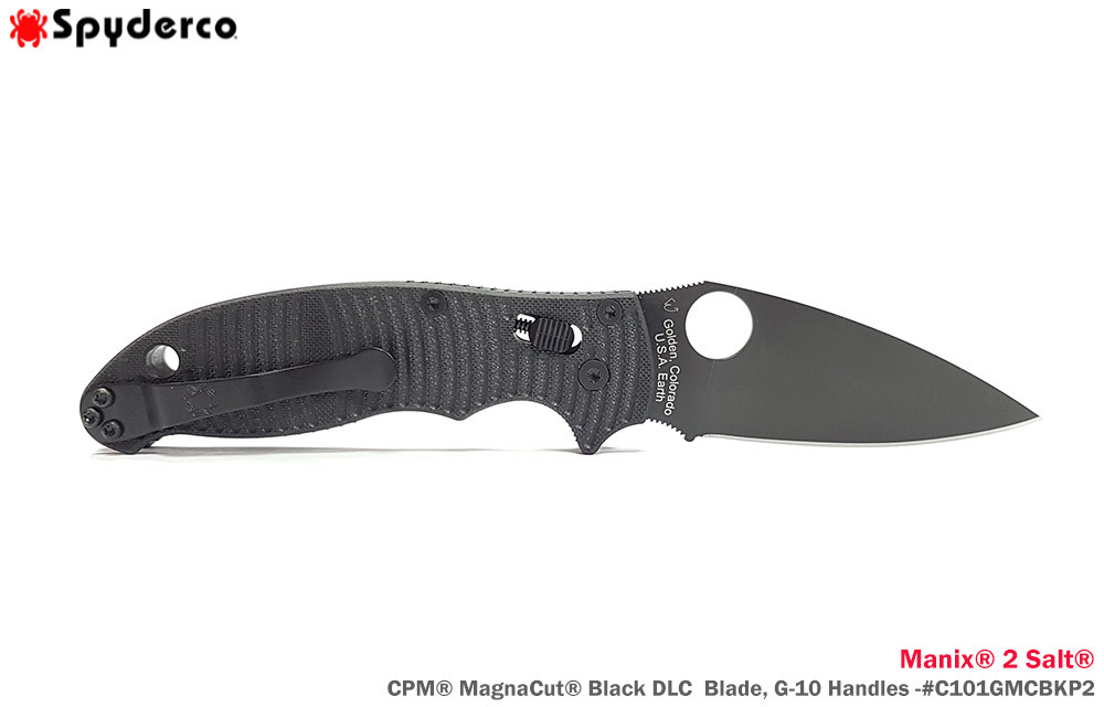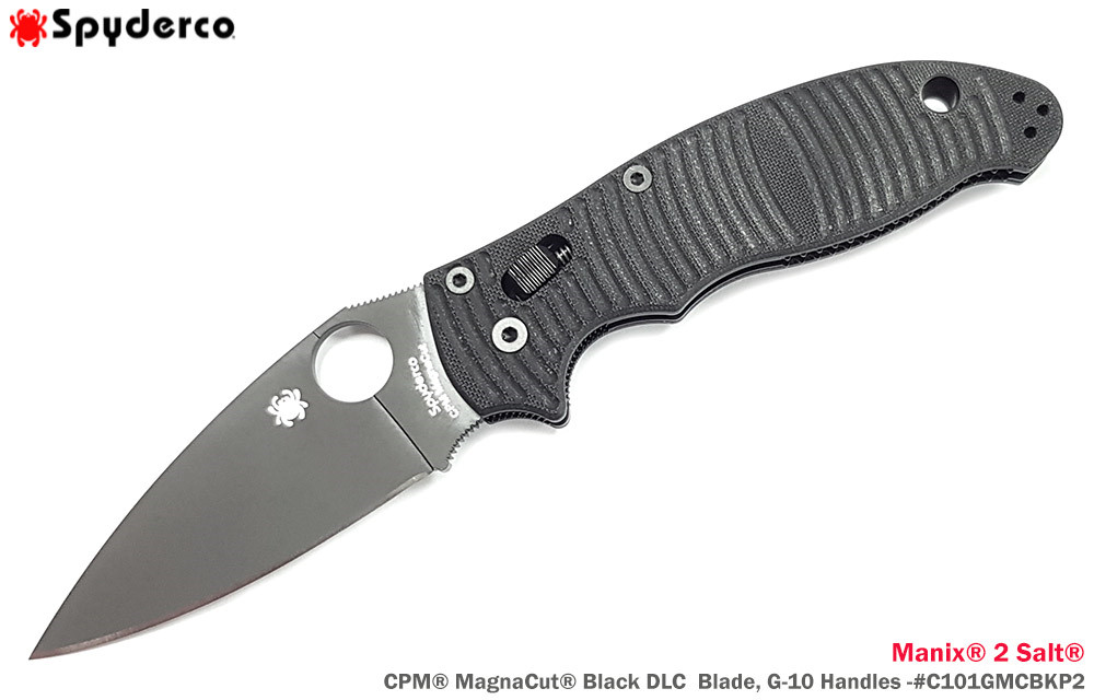 Spyderco Manix® 2 Salt® 黑條紋G10柄Ball Bearing Lock 全黑刃折刀-CPM® MagnaCut®鋼 (黑色DLC處理)