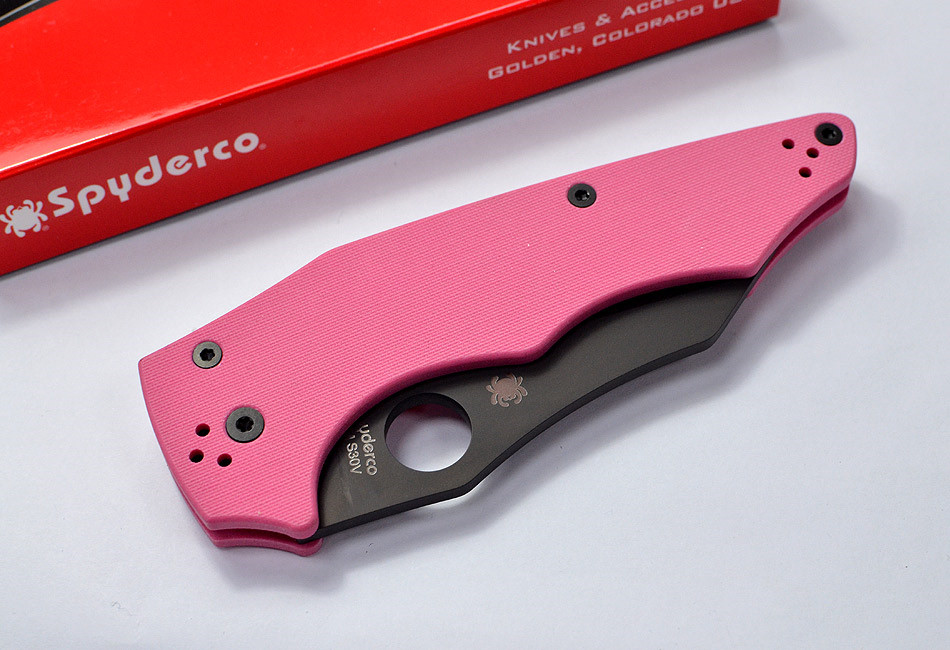 SPYDERCO YoJumbo 粉紅G10柄黑平刃折刀(CPM S30V鋼)【Sprint Run】