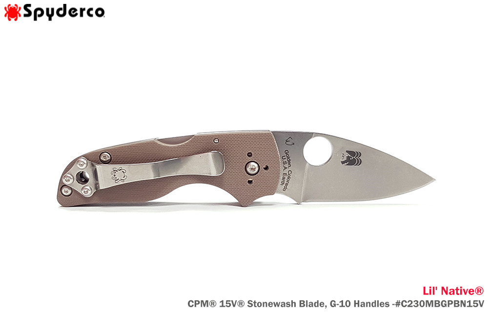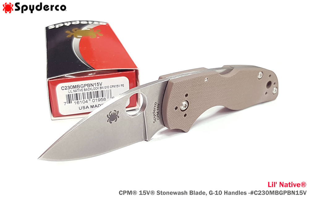 Spyderco Lil' Native® 棕色G10柄 Back Lock 全刃折刀-CPM® 15V®鋼 (石洗處理) 【Sprint Run】
