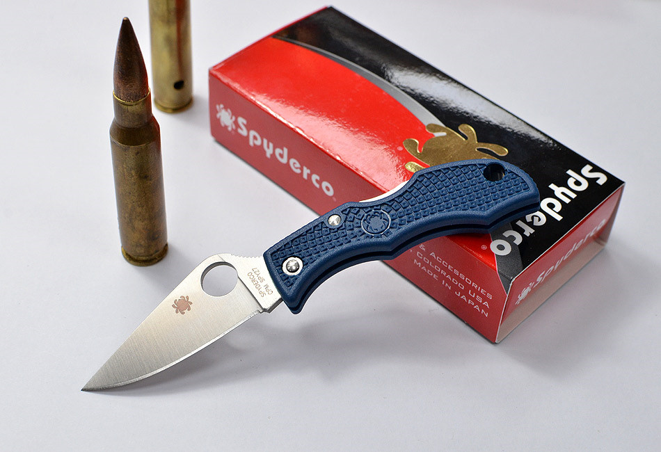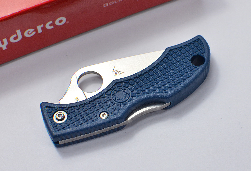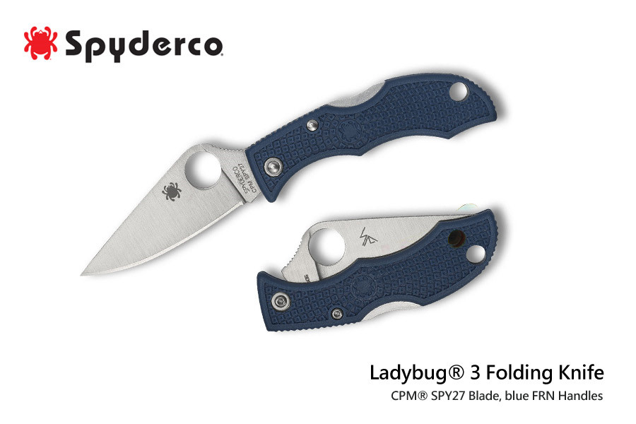 Spyderco 公司出品的鑰匙圈小刀中,就屬「小瓢蟲」最受到歡迎。Spyderco最小的輕量刀款 ,它折合時的尺寸只有6.3公分,握柄底有穿繩孔能搭 配尾飾或鑰匙圈使用,是最理想的為鑰 匙鏈隨身攜帶刀,FRN玻璃纖維強化尼龍材質的握柄相當輕盈,總體重量才17公克,帶在身 上一點也不會有 負擔。新一代小瓢蟲折刀,使用的鋼材CPM® SPY27,註冊商標的圓形蜘蛛圖案則從尾端移至中央。