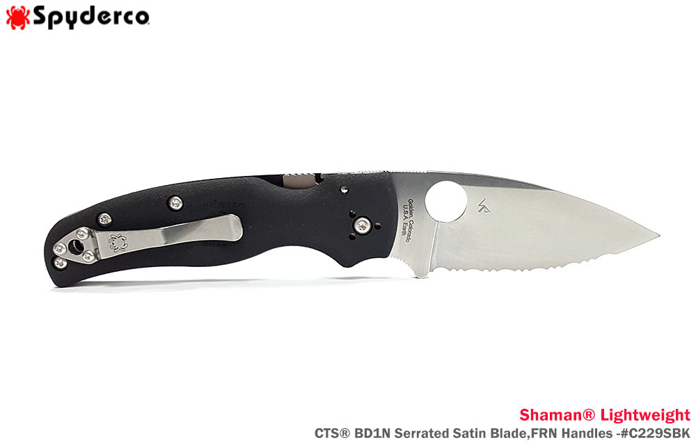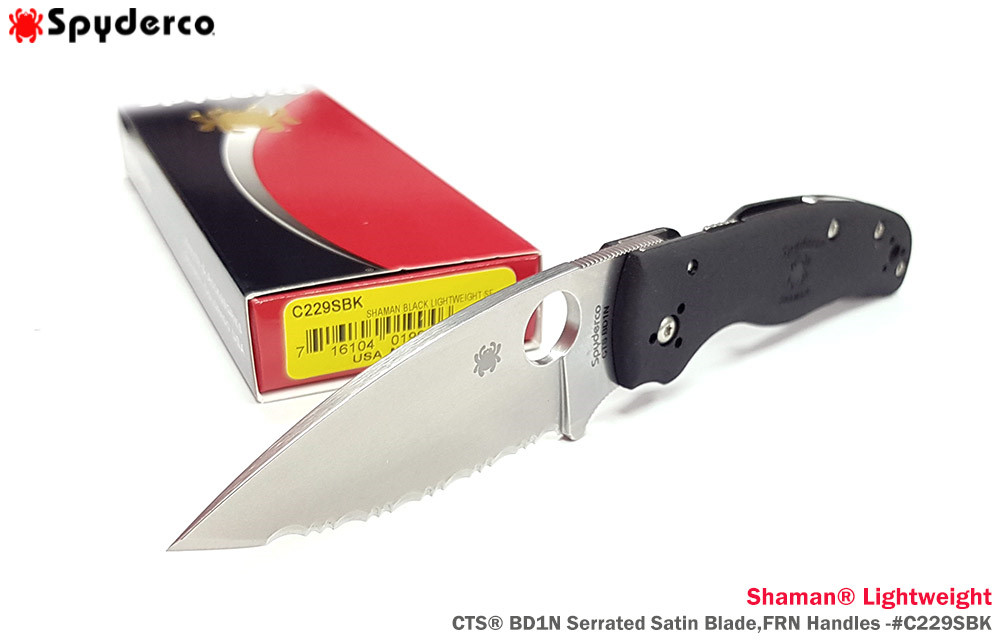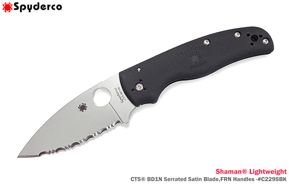Spyderco Shaman® Lightweight 輕量版黑色FRN柄 Compressio Lock 全齒折刀- CTS® BD1N鋼 (Satin處理)