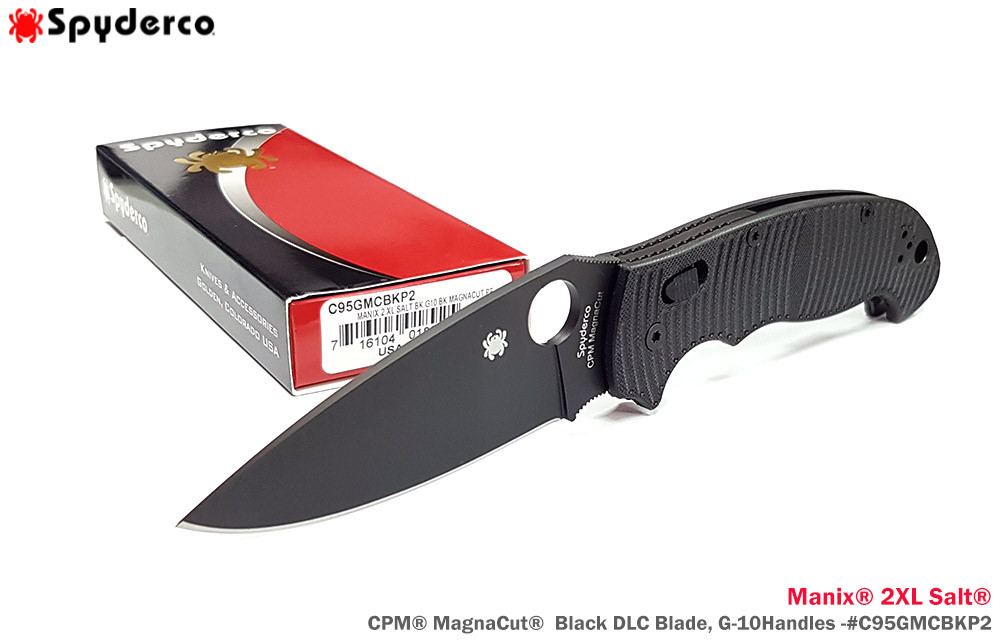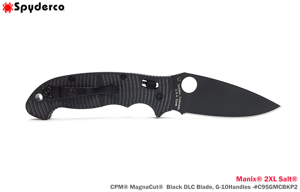 Spyderco Manix® 2XL Salt® 黑色G10柄 Ball Bearing Lock 全刃折刀- CPM® MagnaCut®鋼 (DLC處理)