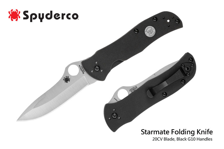 Spyderco Starmate Folding Knife Black G10 Handle 20CV Plain Edge C55G20CVP