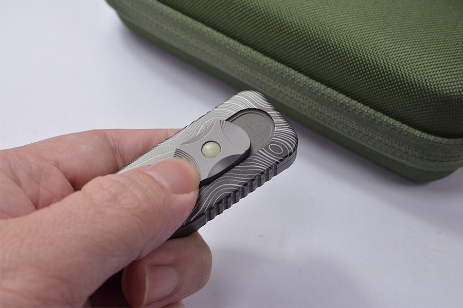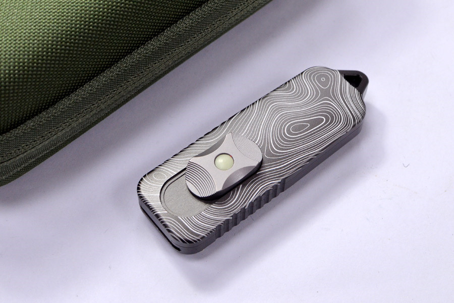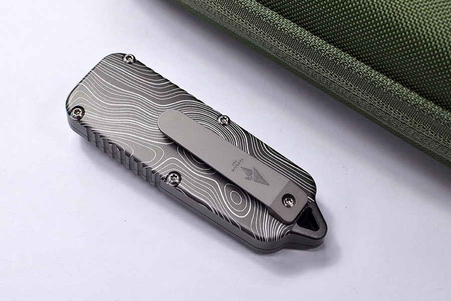 CAS OTF 採用航空級 T6061 鋁合金、6AL-4V 鈦合金以及幾乎不會生鏽的 VANAX™ 刀片打造而成,完美融合了現代工程技術和實用工具設計。其採用 DLC 塗層處理的野戰灰手柄上飾有精細的雷射蝕刻地形圖,既增添了獨特的美學價值,又不影響其耐用性。與典型的OTF刀具不同,這款刀具採用獨特的弧形手柄設計,需要長時間的CNC精密加工,才能帶來顯著更佳的手感。隱藏式螺絲、精心設計的防滑紋、鈦合金背夾以及帶有C3夜光點的鈦合金推桿,共同打造出簡潔、極簡且性能卓越的整體造型。對於那些秉持「形式服從功能」理念,並欣賞高精度機械工具的用戶而言,CAS OTF Topo Edition堪稱緊湊型OTF刀具設計的巔峰之作。。