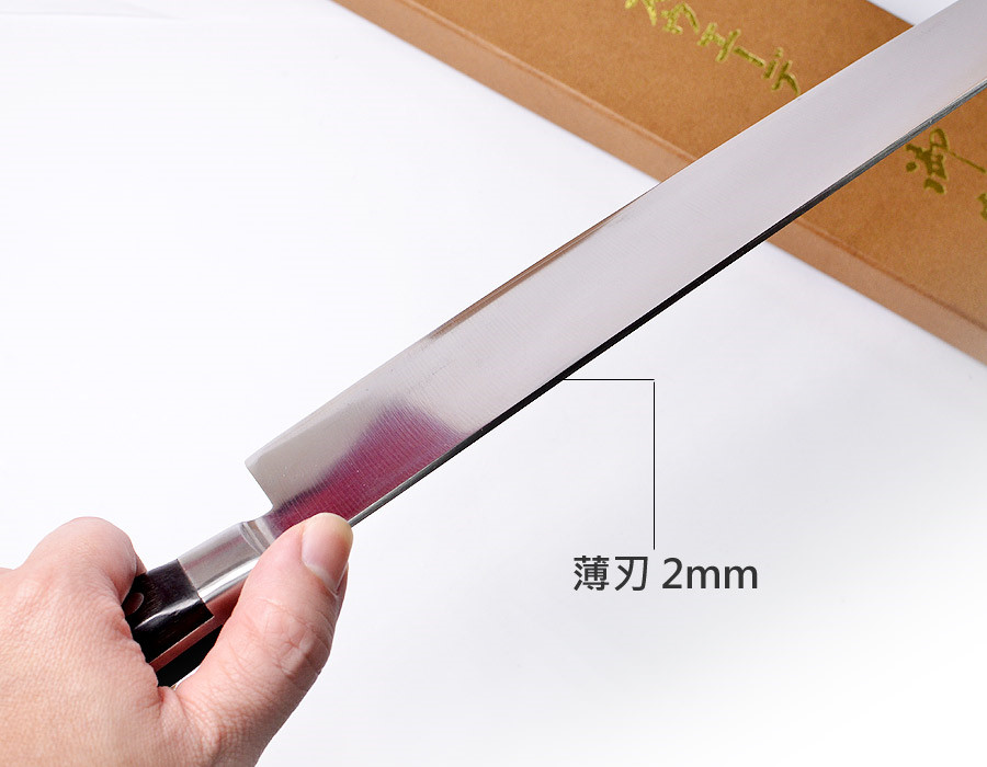 刀面上的「正秀作」刻印代表了職人的信譽保證,刀刃經由手工研磨,出廠即擁有極佳的切入感。