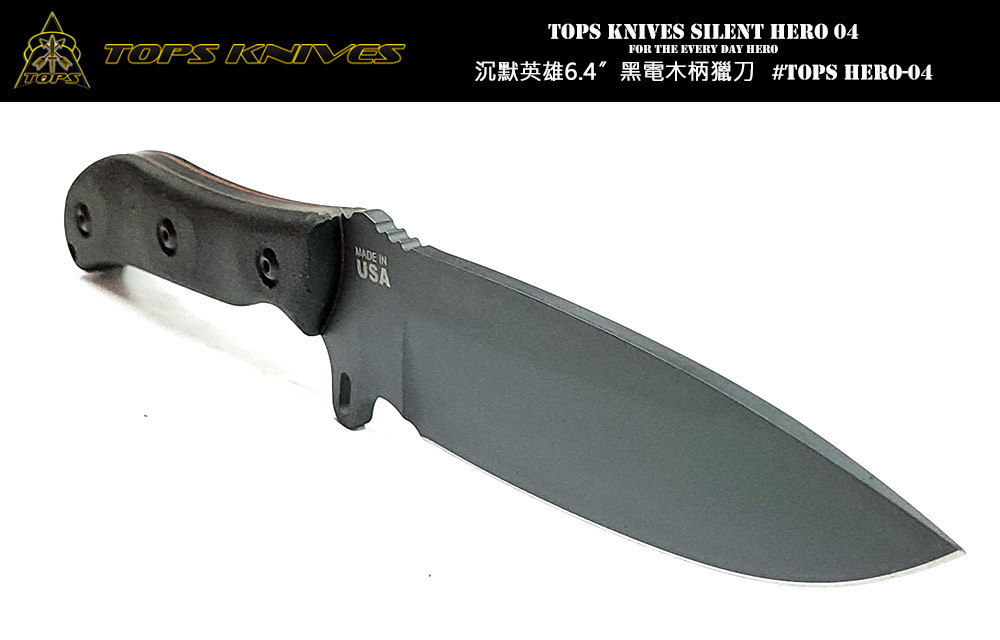TOPS SILENT HERO IV 沉默英雄04 黑電木柄 6.4''黑刃直刀 -1095碳鋼(Cerakote Sniper Grey深灰處理)