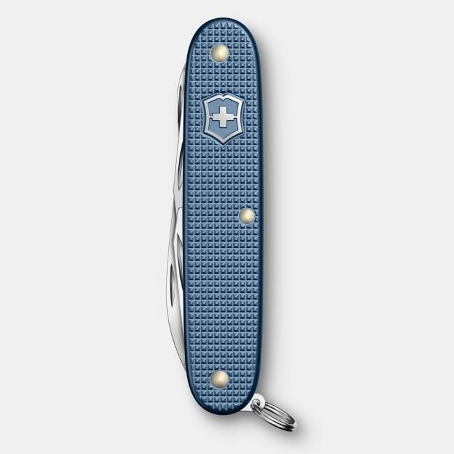 Swiss made 9-function pocket knife with embossed and anodized aluminum scales