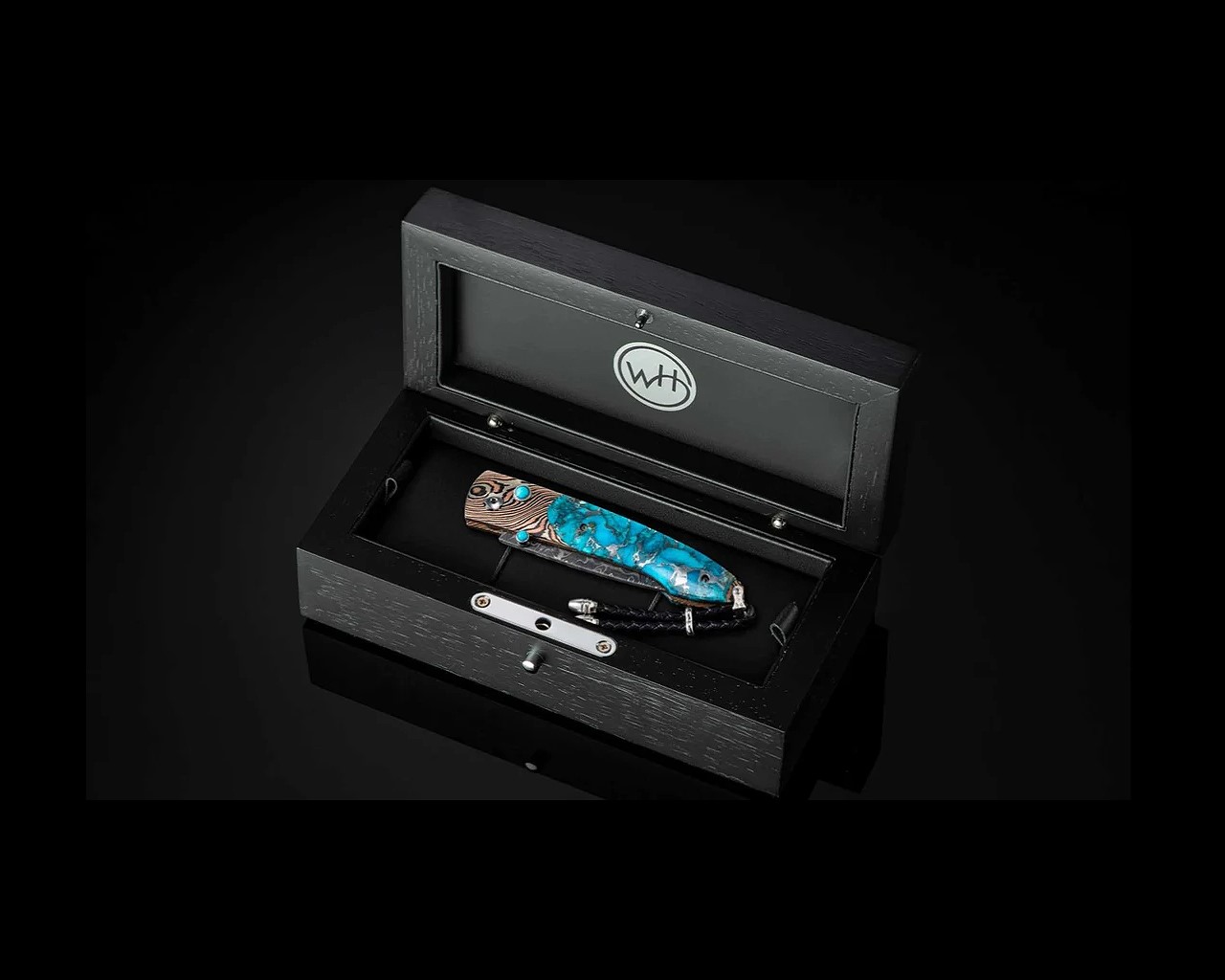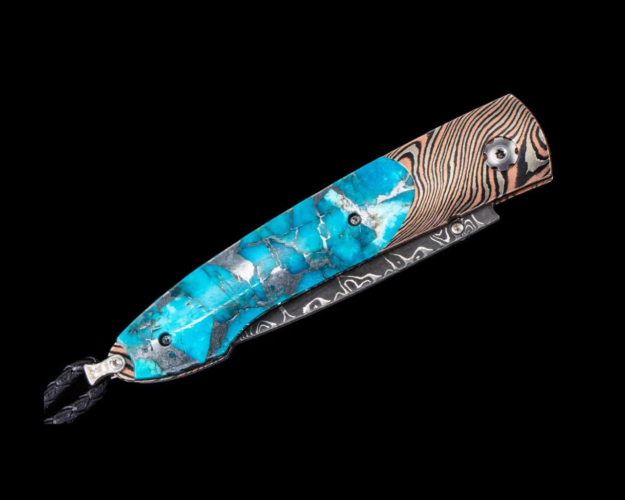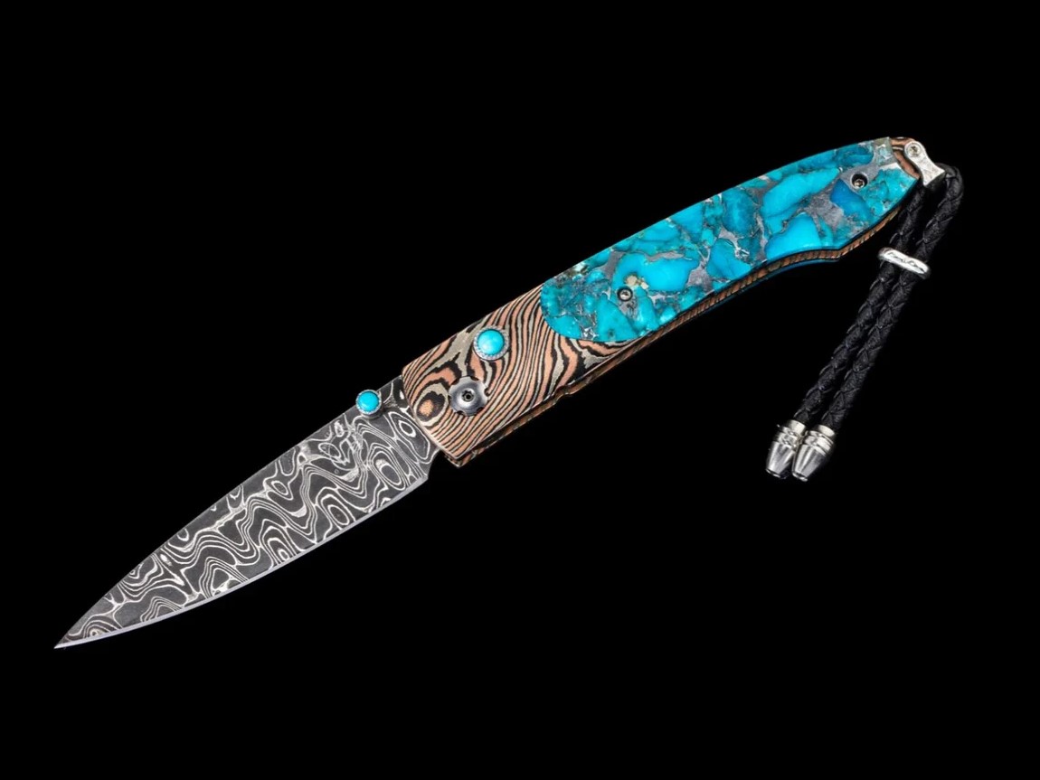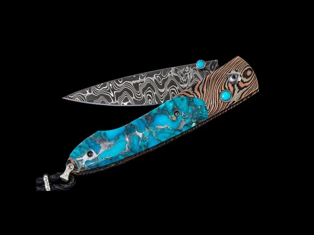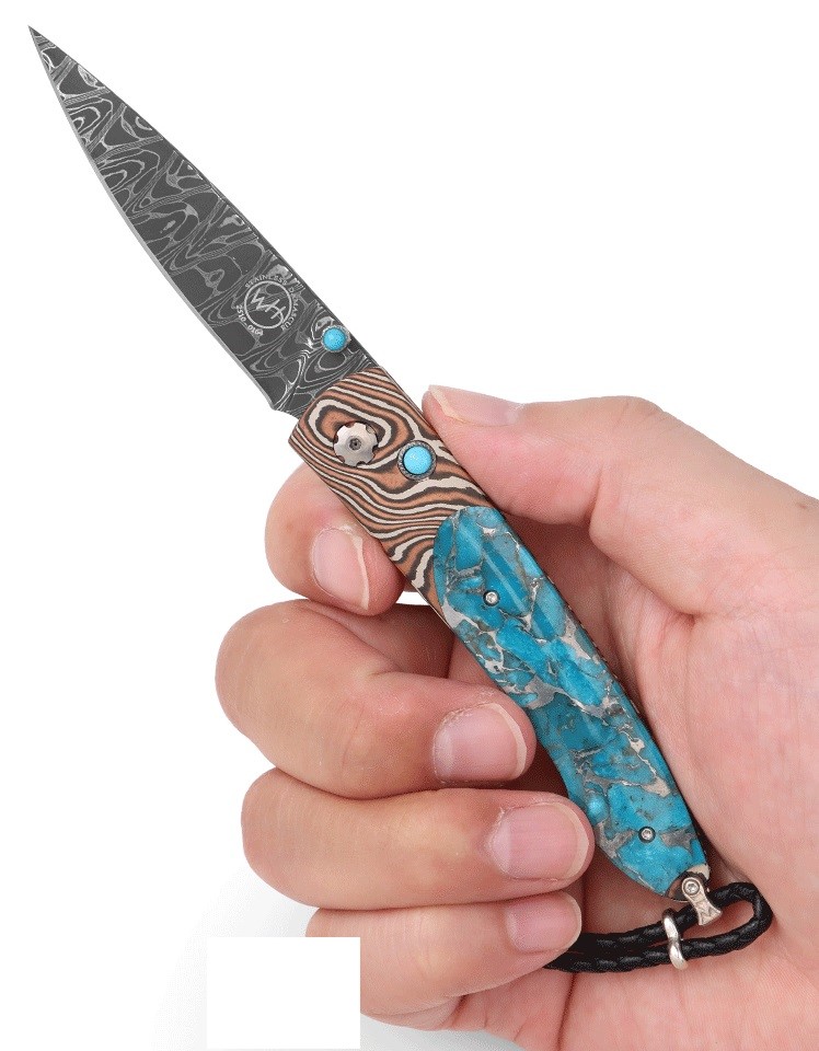[限量版] William Henry LANCET TWISTED /Chad Nichols大馬士革鋼. 木目金框架鑲嵌綠松石-限量100隻-折刀