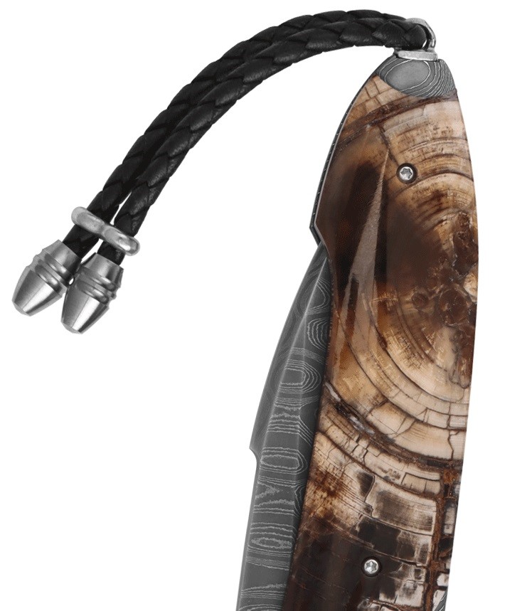 柄材:大馬士革鋼框架. 鑲嵌擁有一萬年歷史的猛獁象牙化石