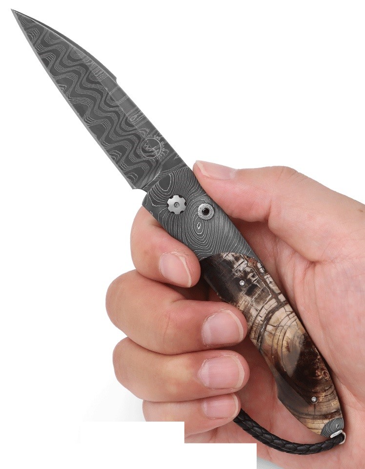 [限量版] William Henry EPIC AUTOMATIC MEADOWS /Chad Nichols大馬士革鋼. 鑲嵌猛瑪象牙-限量250隻-側彈刀