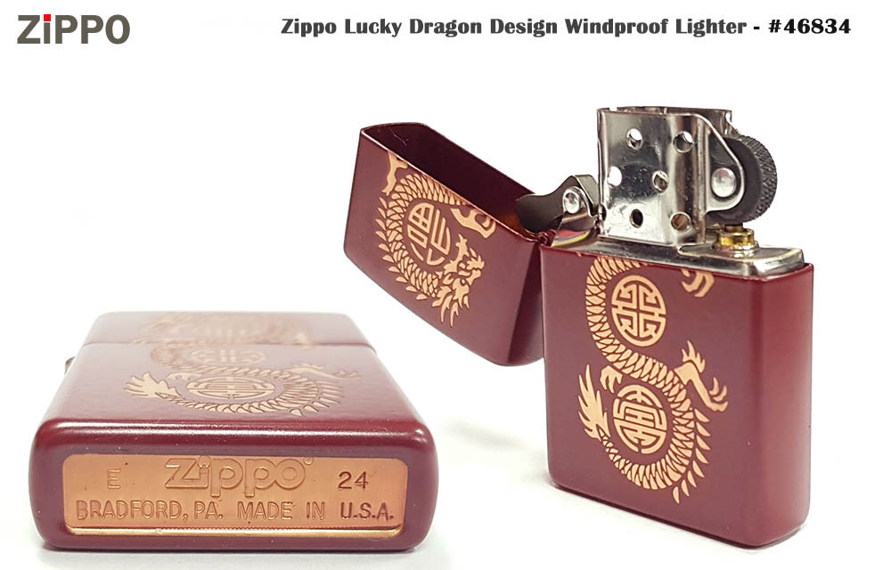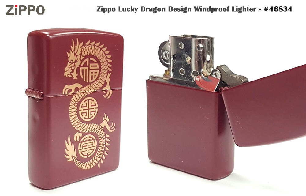 46834 結合了吉祥的東方龍圖騰、優雅的梅洛紅底色以及精緻的彩圖印刷,是一款極具收藏價值和文化意涵的打火機。